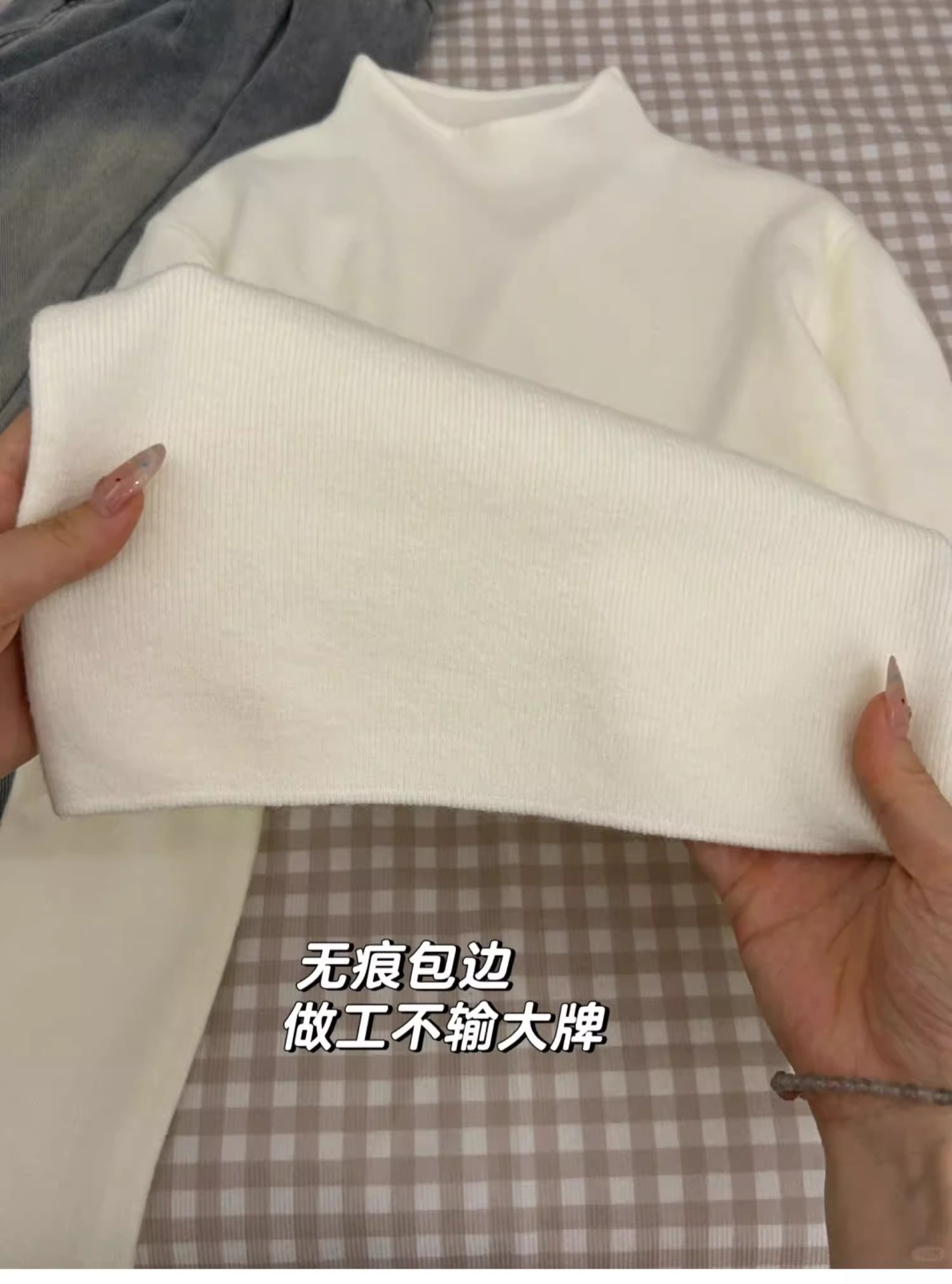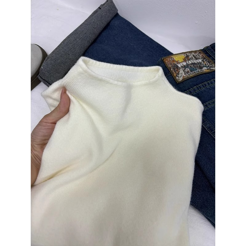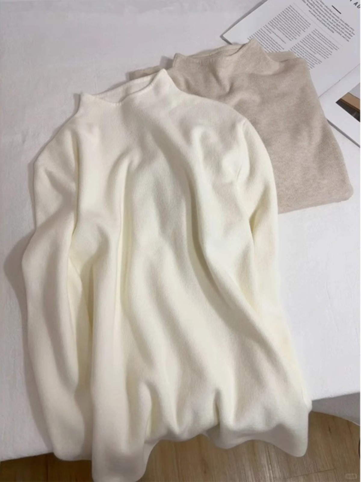 작은 스탠드 칼라 두꺼운 세미 하이 칼라 니트 베이스 셔츠 여성의 2024 가을과 겨울 부드러운 왁스 같은 내부 풀오버 스웨터 탑 두께스토어 가기