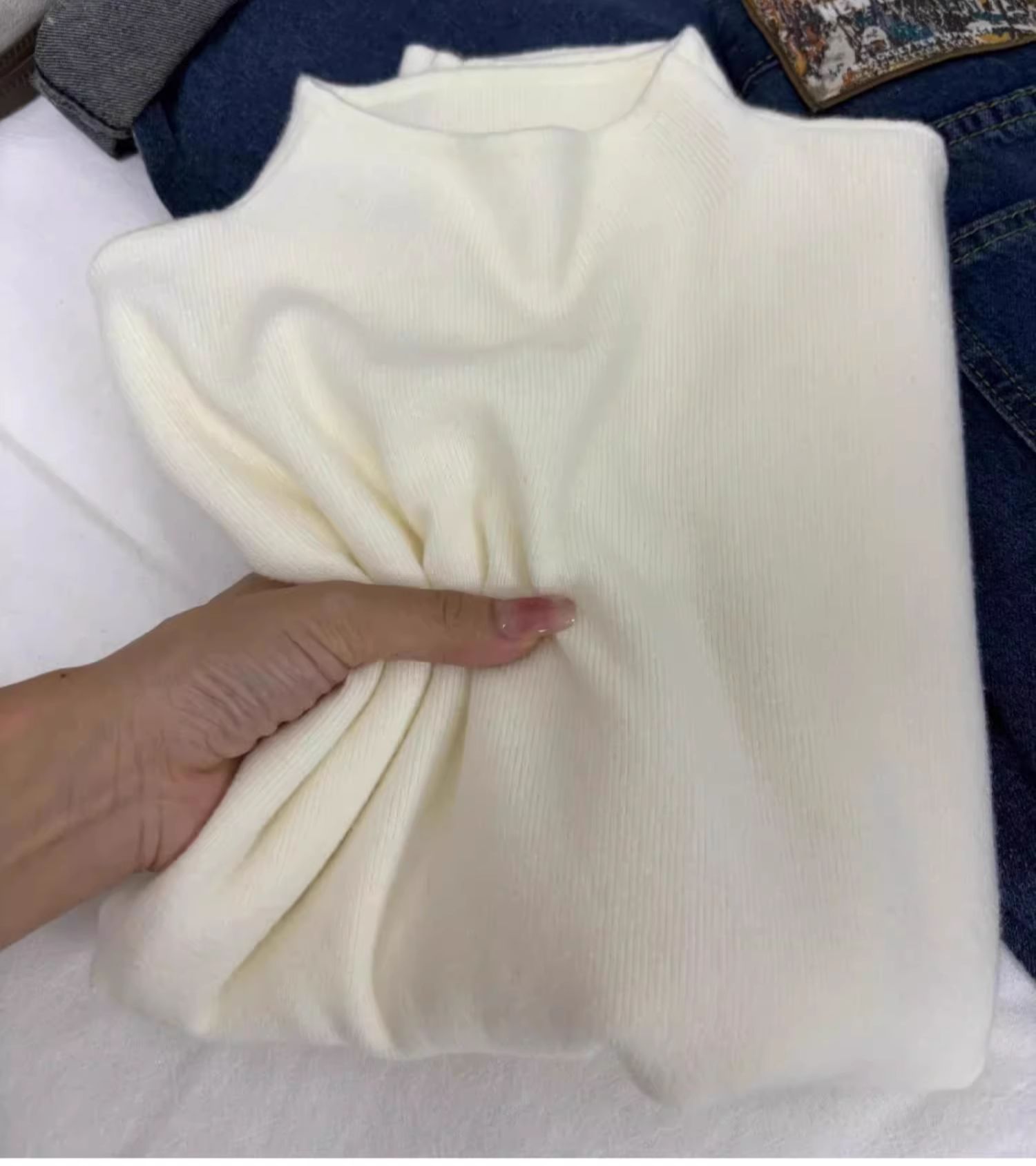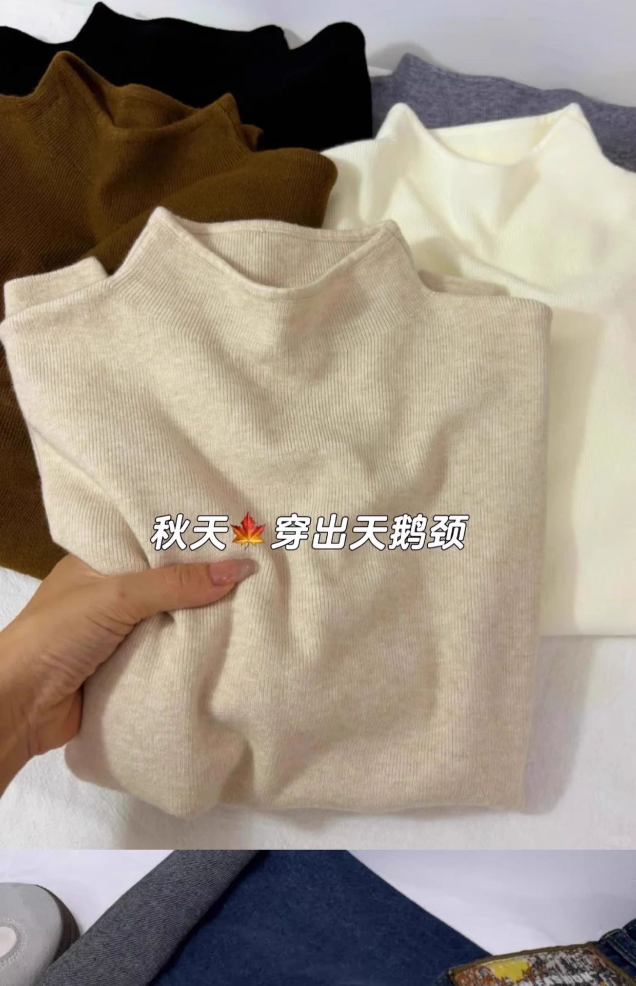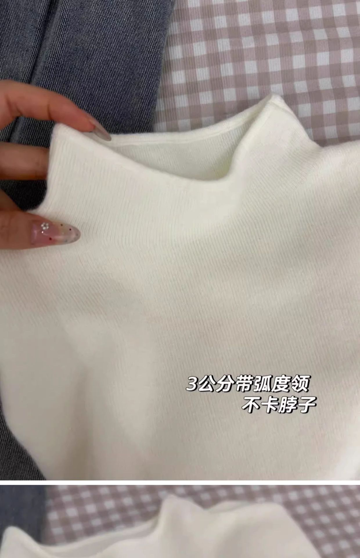 작은 스탠드 칼라 두꺼운 세미 하이 칼라 니트 베이스 셔츠 여성의 2024 가을과 겨울 부드러운 왁스 같은 내부 풀오버 스웨터 탑 두께스토어 가기
