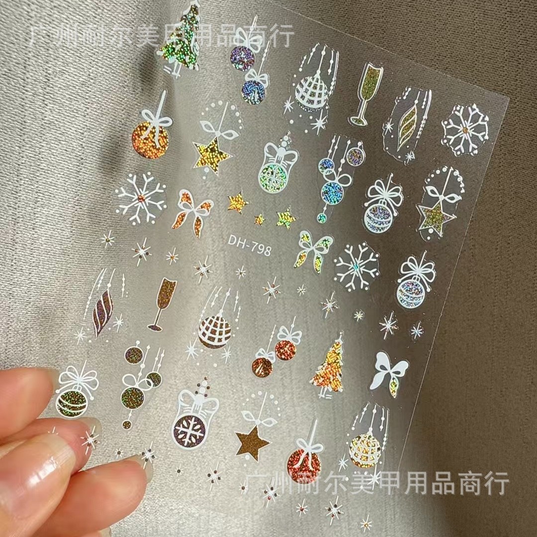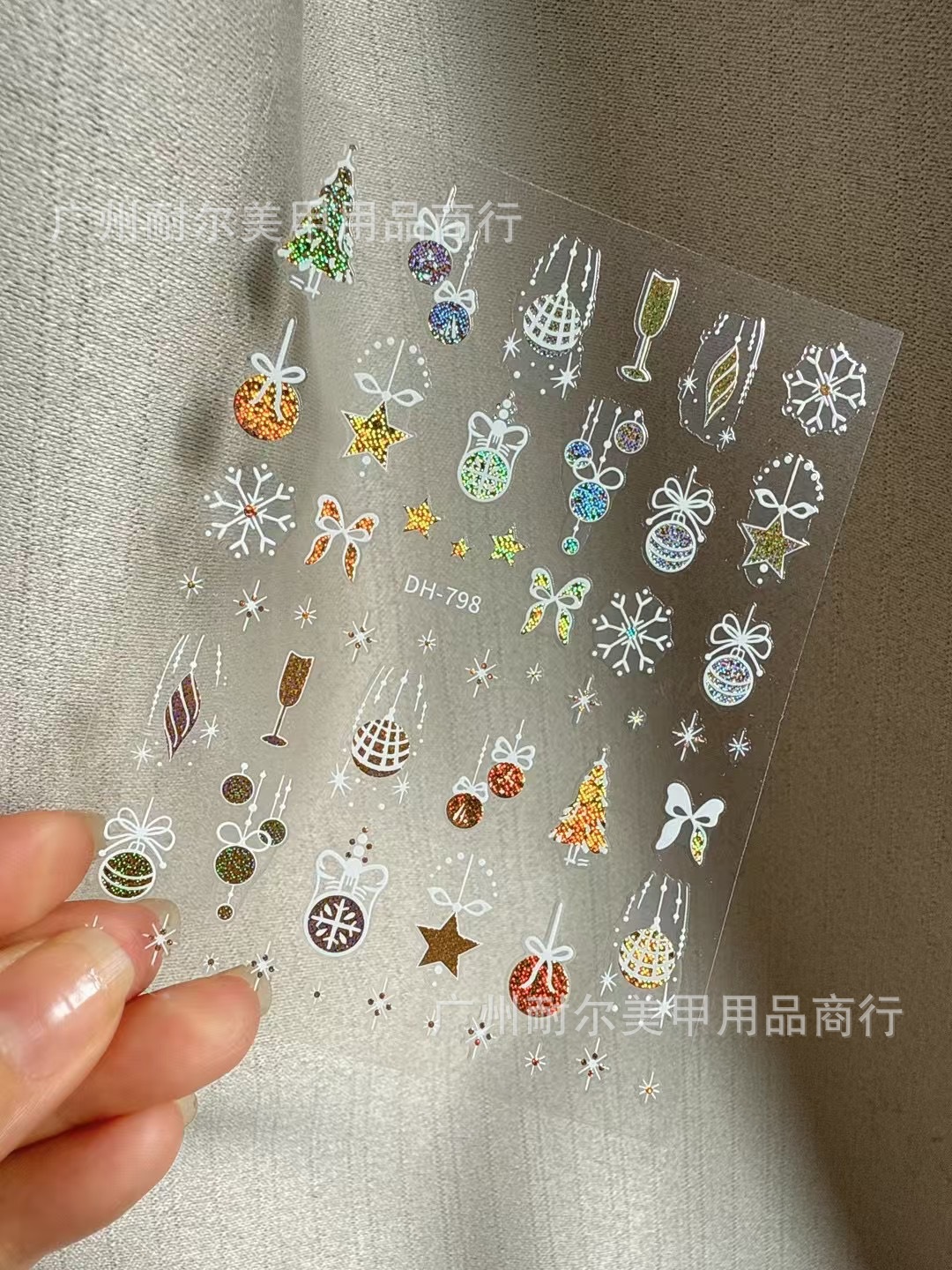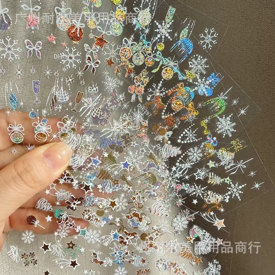 새로운 크리스마스 시리즈 네일 접착 스티커 레이저 양파 파우더 2 색 옵션 크리스마스 장식 독립 종이 카드 포장