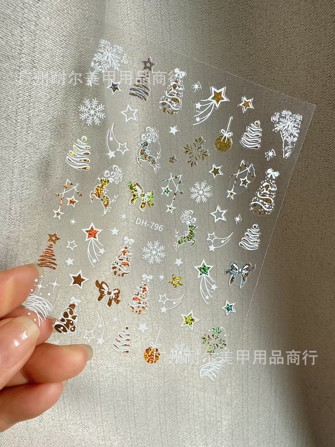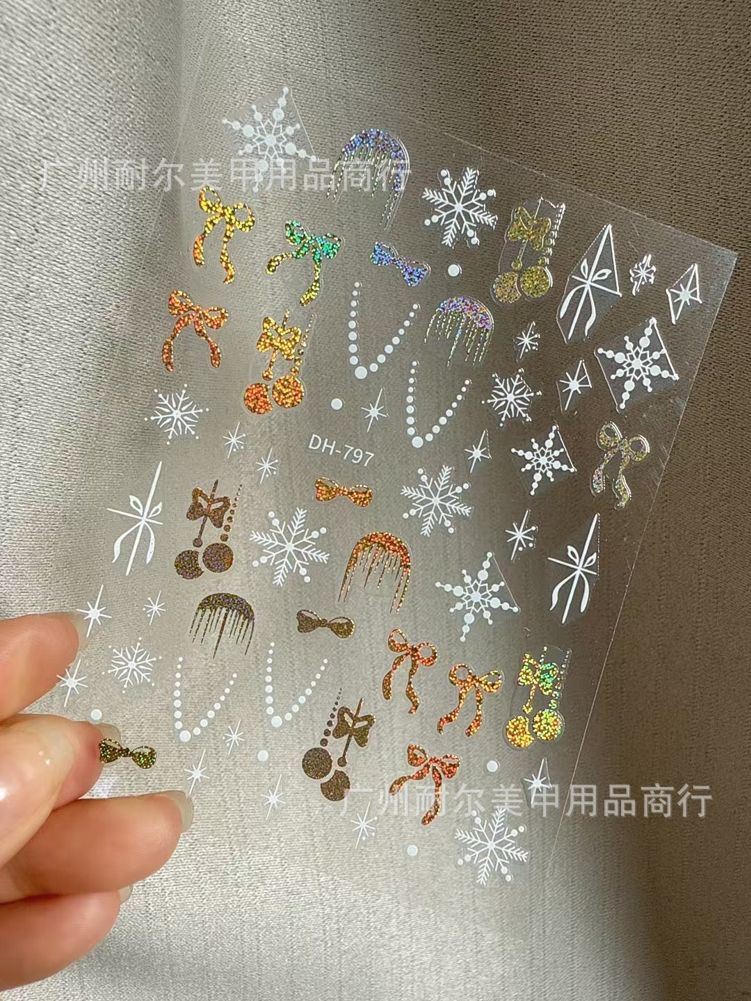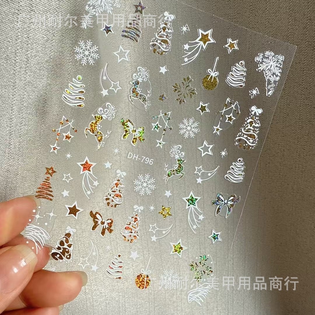 새로운 크리스마스 시리즈 네일 접착 스티커 레이저 양파 파우더 2 색 옵션 크리스마스 장식 독립 종이 카드 포장