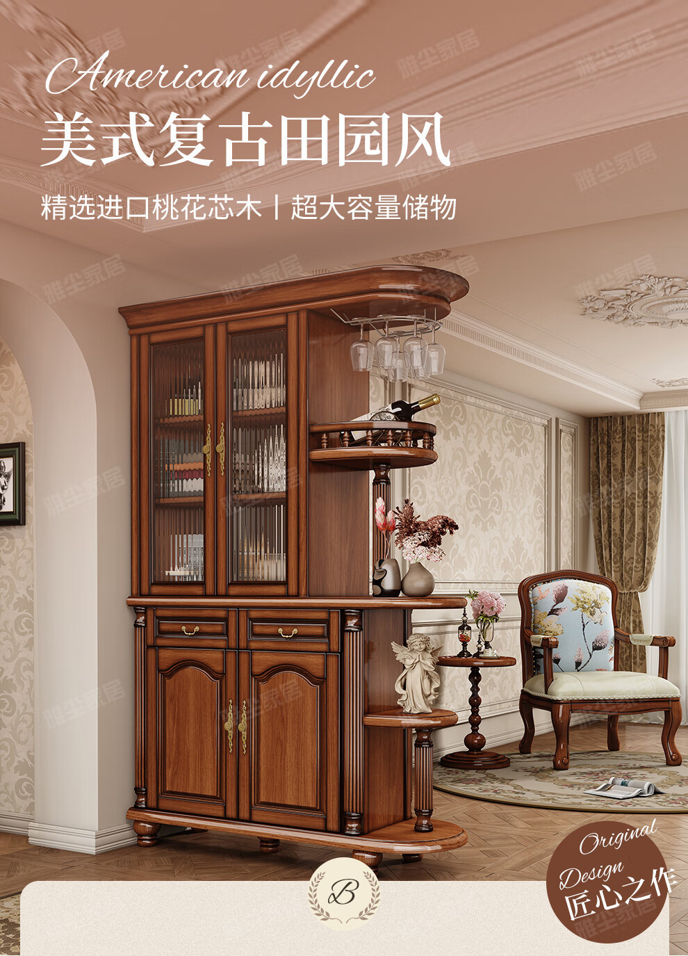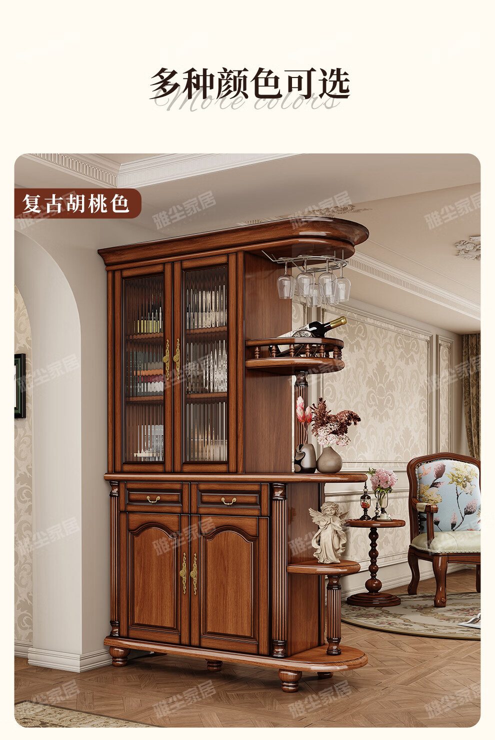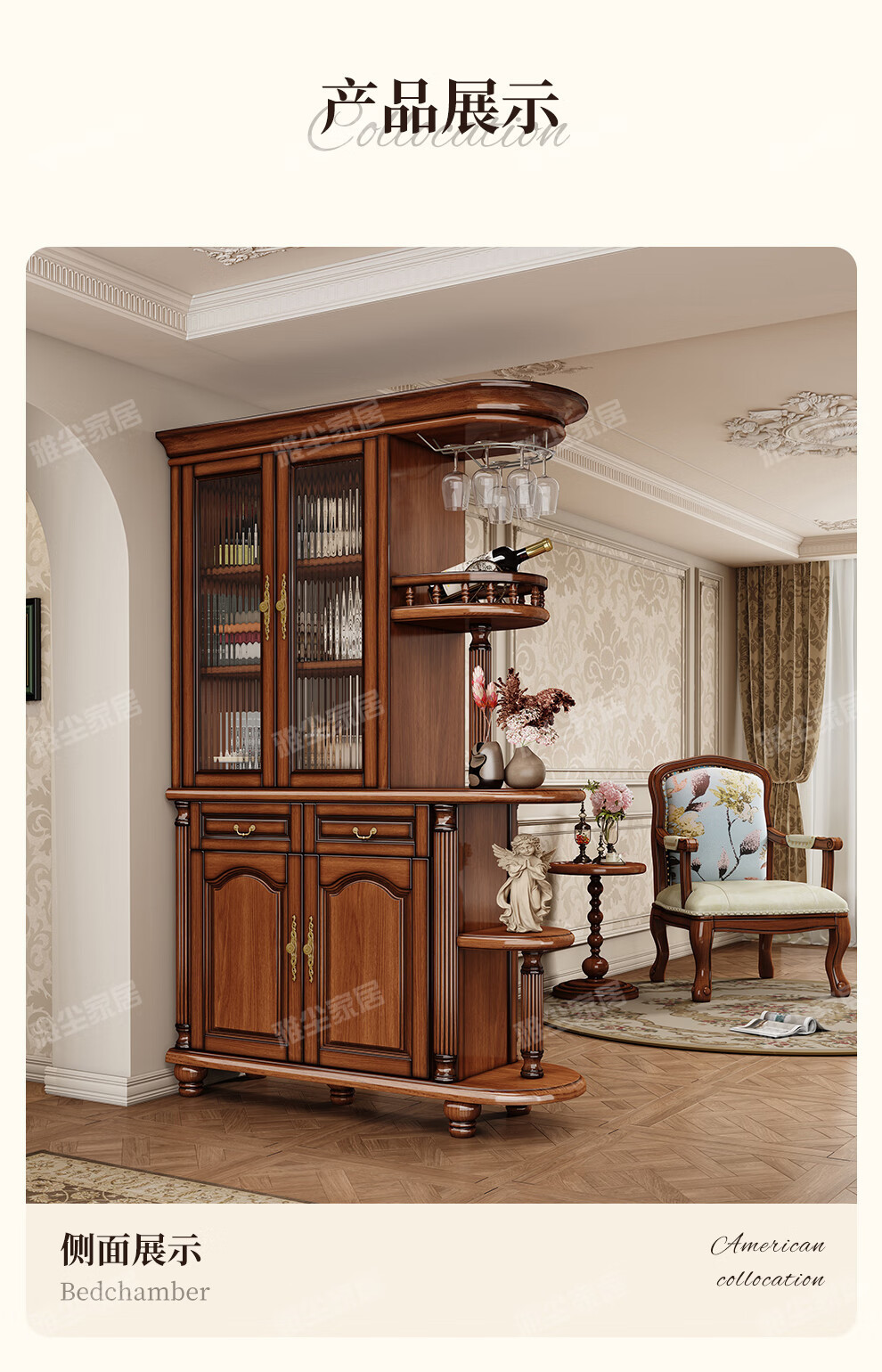 아메리칸 스타일 솔리드 우드 룸 캐비닛 빈티지 와인 캐비닛 스토리지 홀 양면 입구 캐비닛 거실 파티션 라이트 럭셔리 사이드 보드