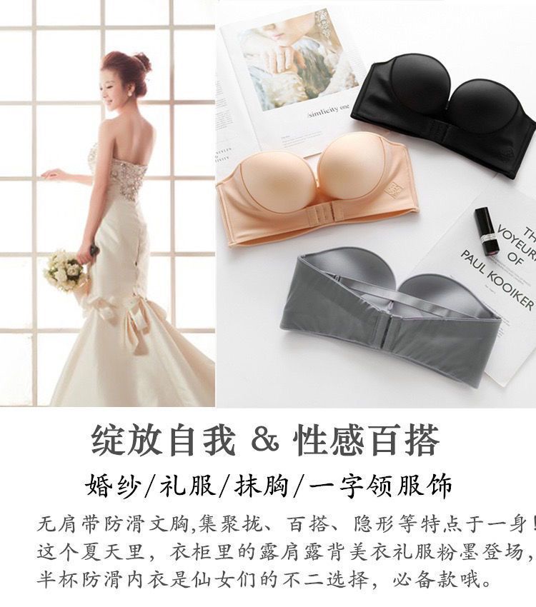 스트랩리스 속옷 여성용 푸시 업 미끄럼 보이지 않는 Rimless Bra Thick Traceless Upper-support 조정 가능한 Small Bra스토어 가기