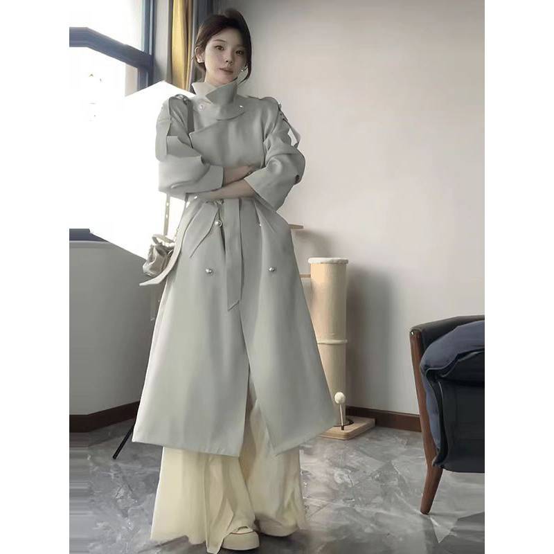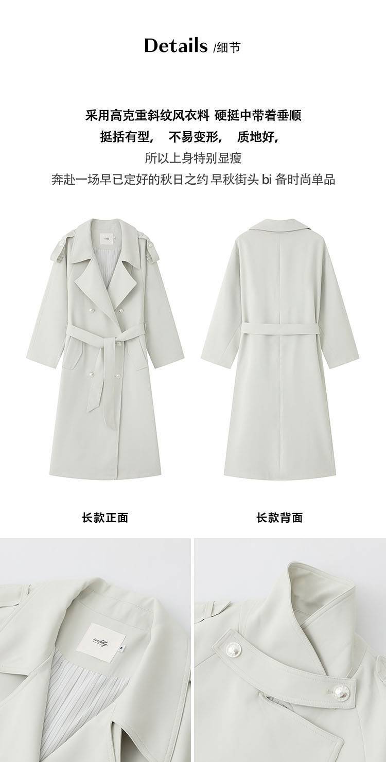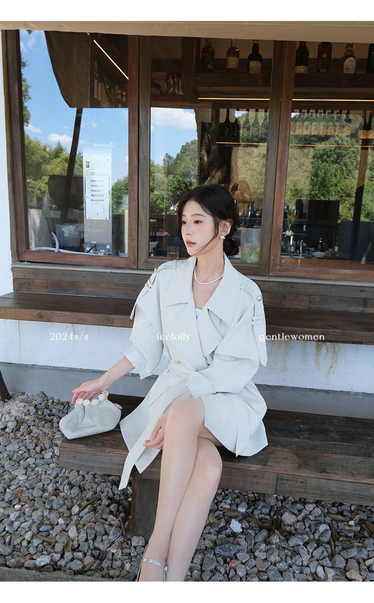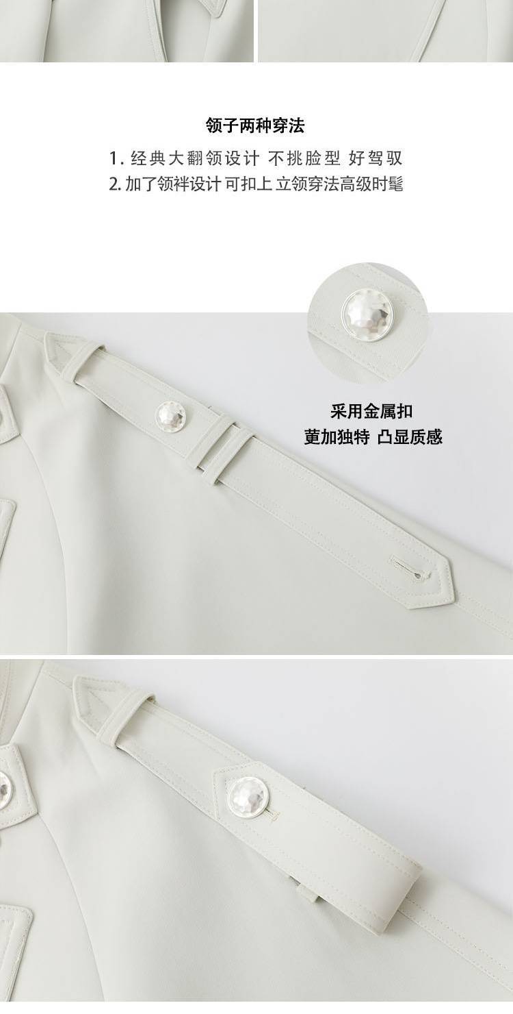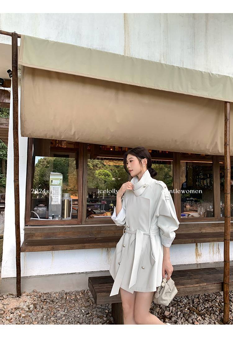 2024 봄과 가을 중간 길이의 무릎 길이 영국 코트 코트 여성 디자인 화이트 옷깃 캐주얼 작은 코트스토어 가기