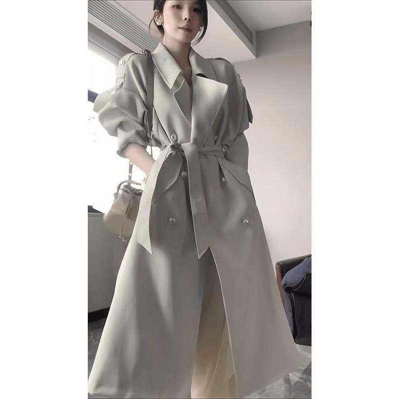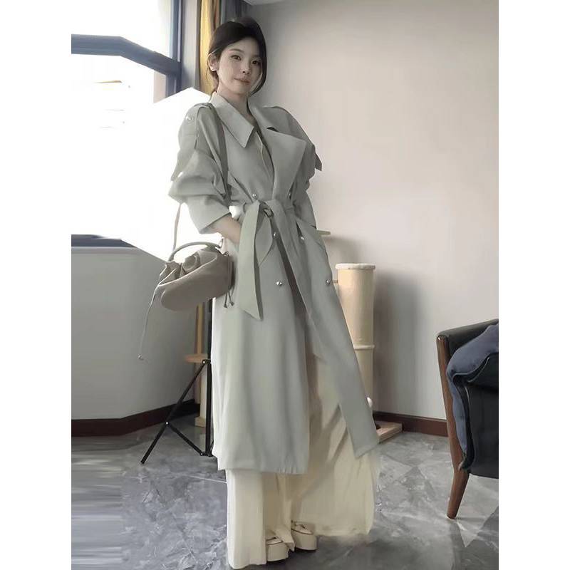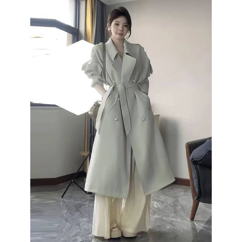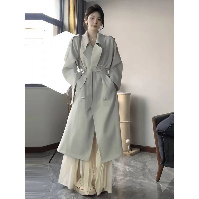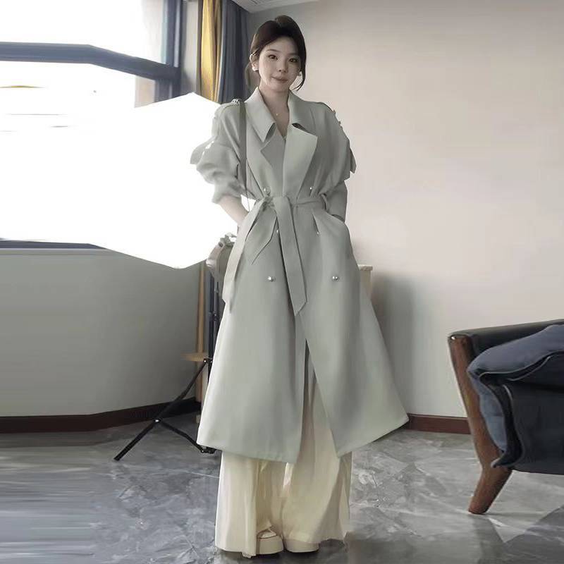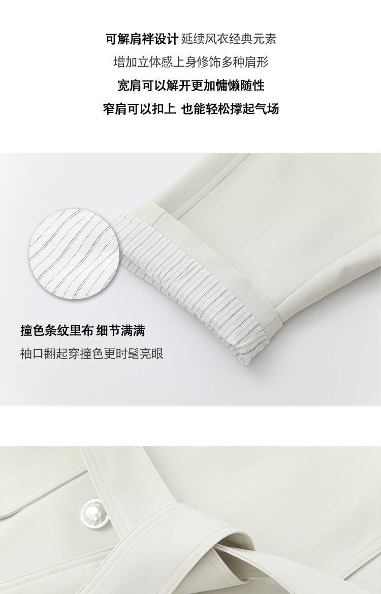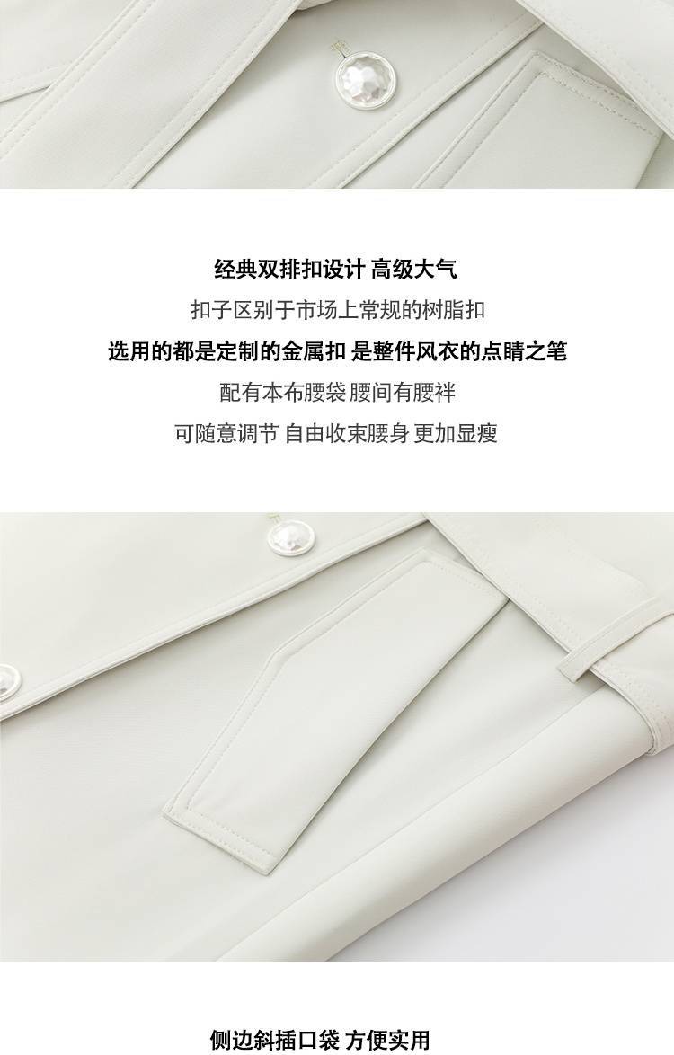 2024 봄과 가을 중간 길이의 무릎 길이 영국 코트 코트 여성 디자인 화이트 옷깃 캐주얼 작은 코트스토어 가기