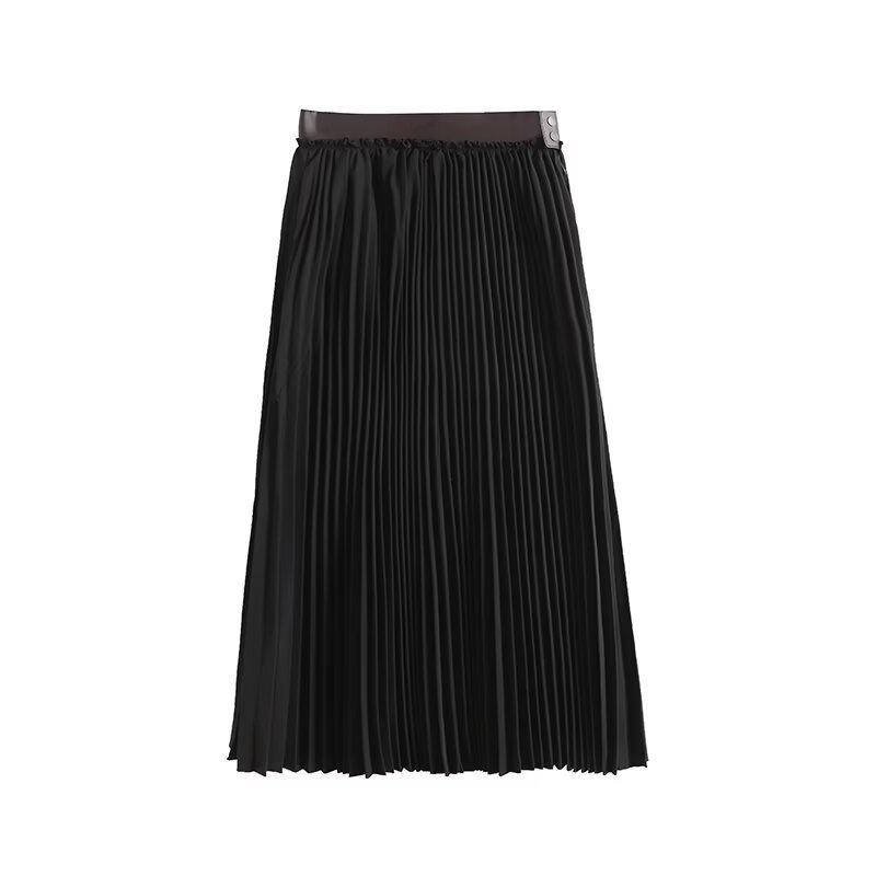 UC & ZA 재고 국경 여성 의류 2024 가을 새로운 기질 여성 허리 가죽 바느질 주름 치마
