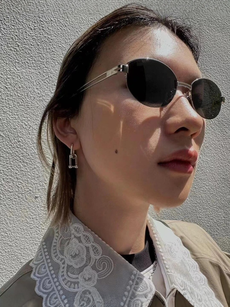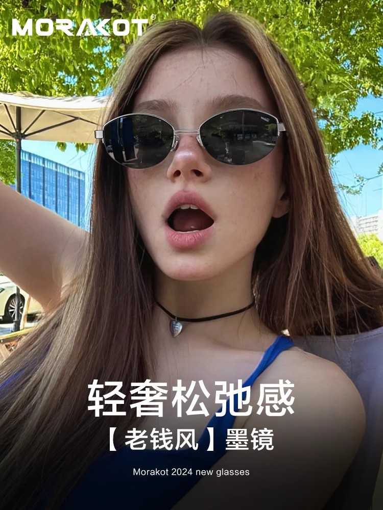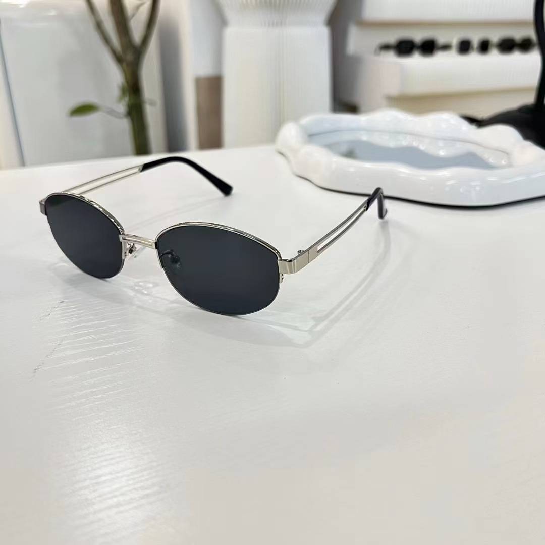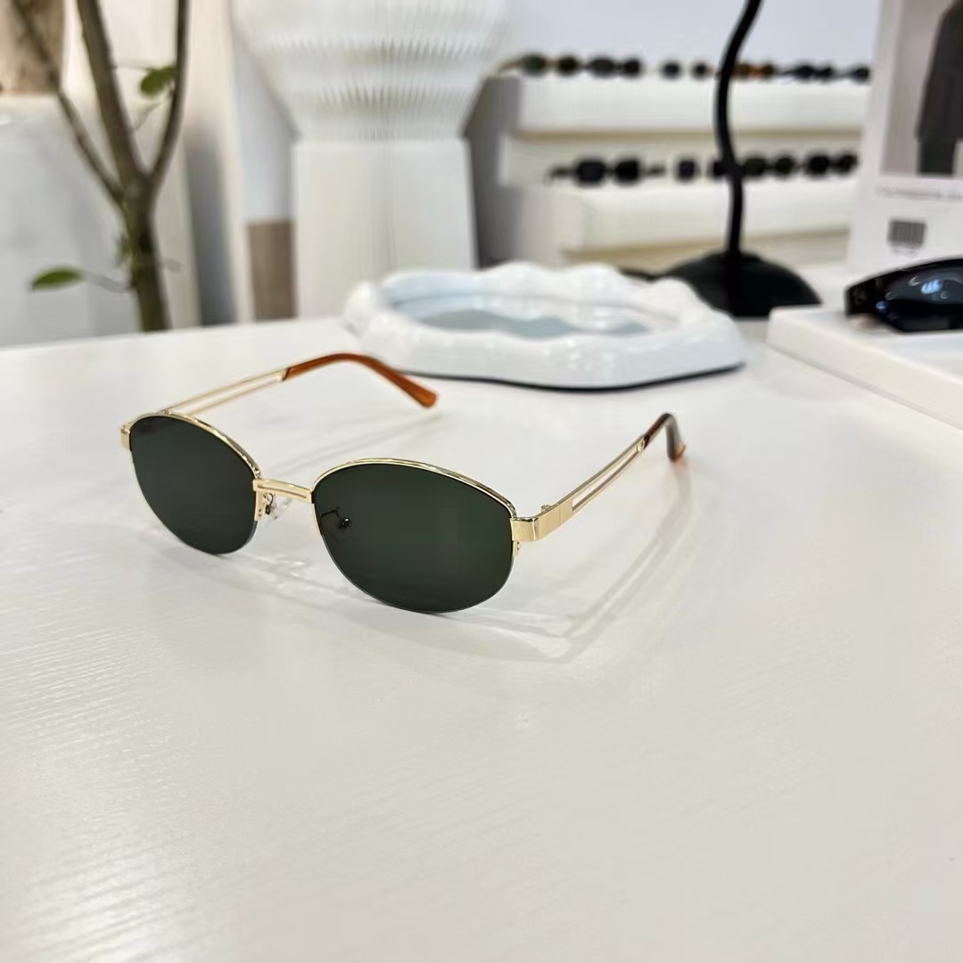 레트로 뉴트럴 라이트 럭셔리 올드 머니 스타일 메탈 하프 프레임 선글라스 여성 하이 엔드 센스 타원형 고양이 눈 안티 UV 선글라스