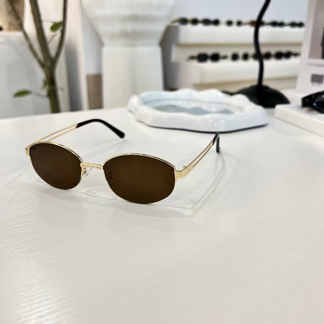 레트로 뉴트럴 라이트 럭셔리 올드 머니 스타일 메탈 하프 프레임 선글라스 여성 하이 엔드 센스 타원형 고양이 눈 안티 UV 선글라스스토어 가기
