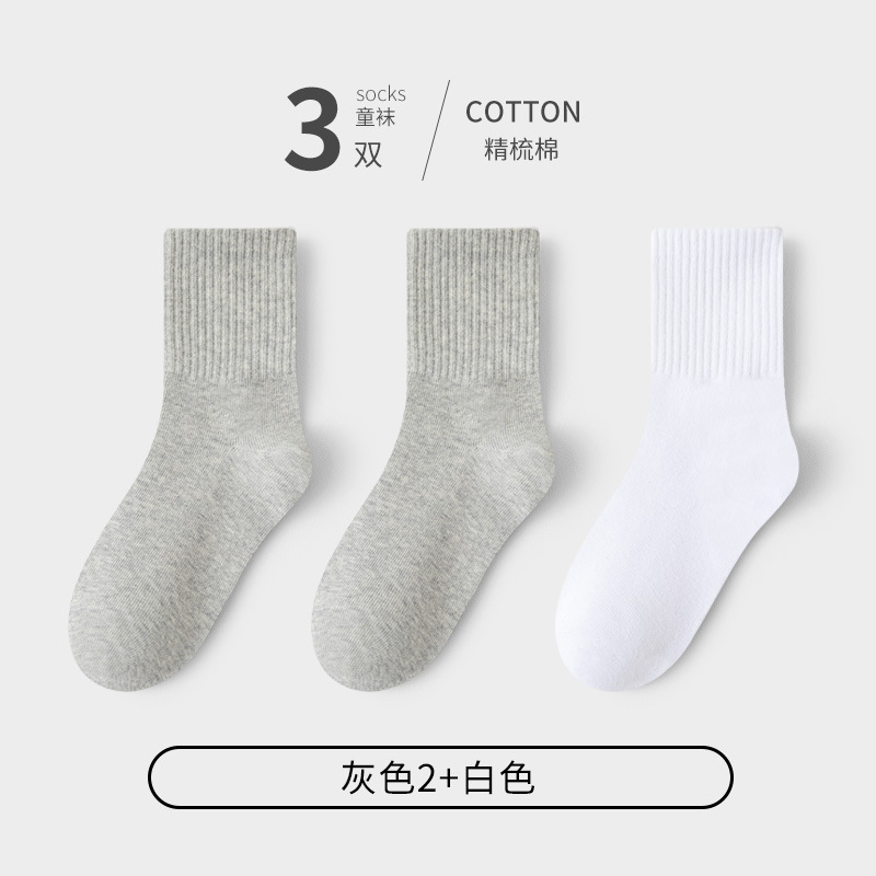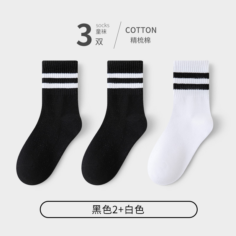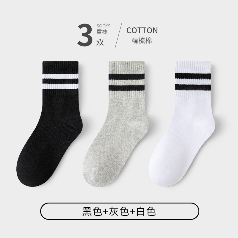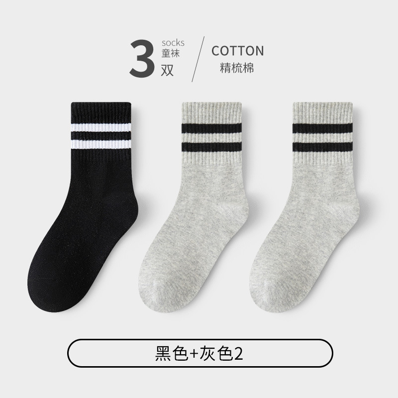 어린이 양말 가을과 겨울면 양말 흑백 회색 줄무늬 학생 양말 소년 소녀 중대형 어린이 스포츠 양말