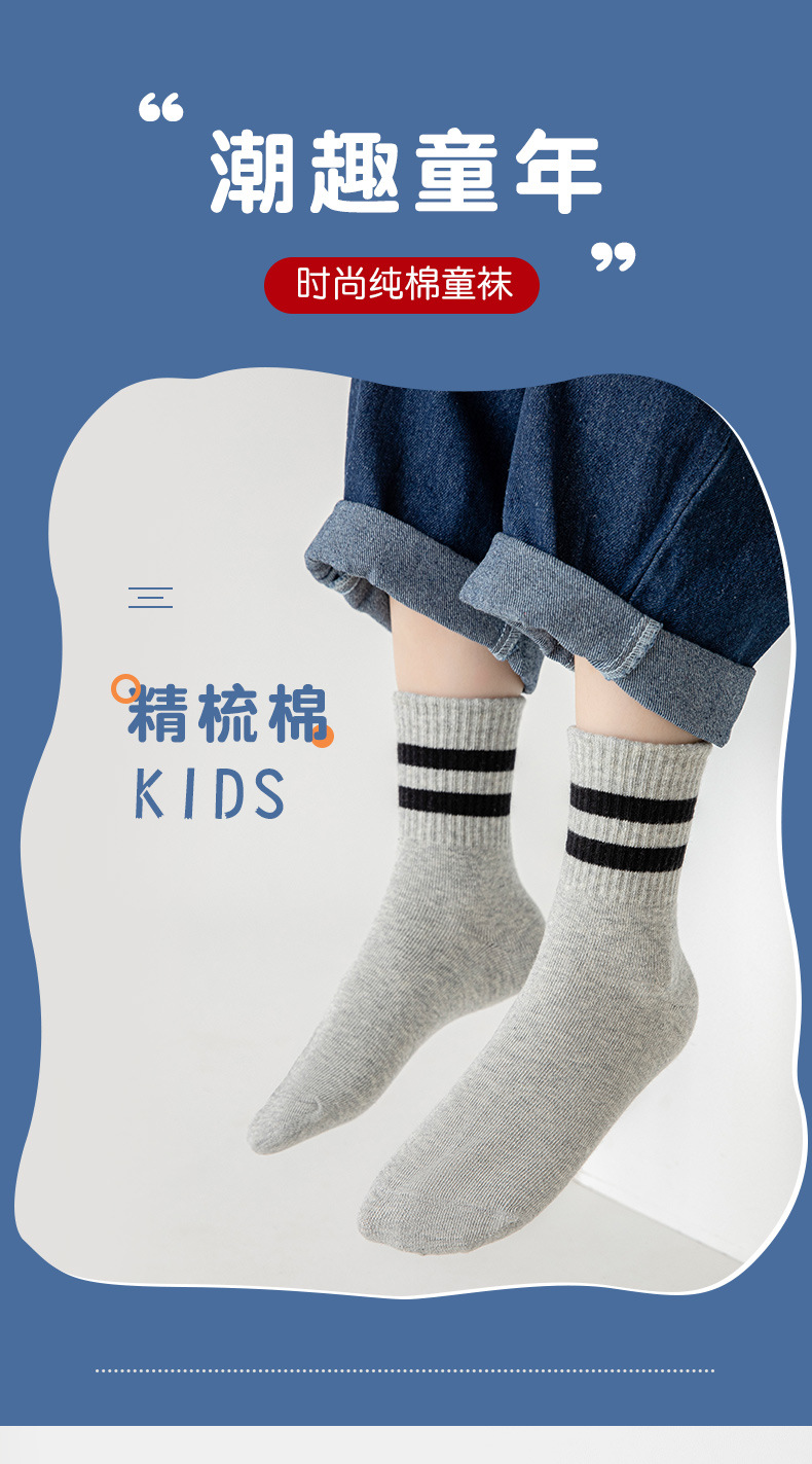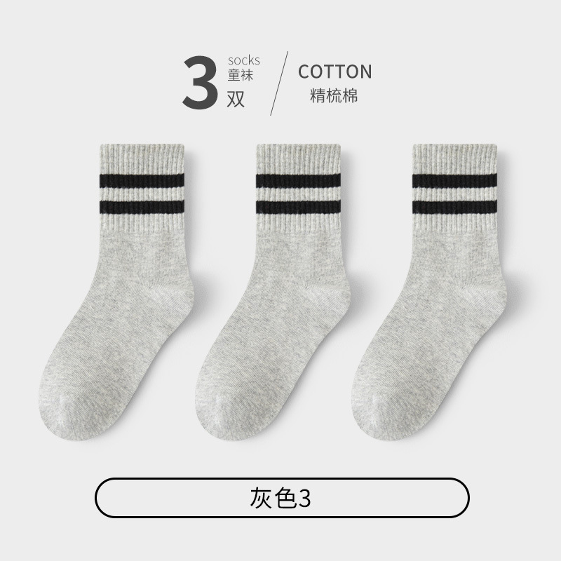 어린이 양말 가을과 겨울면 양말 흑백 회색 줄무늬 학생 양말 소년 소녀 중대형 어린이 스포츠 양말스토어 가기