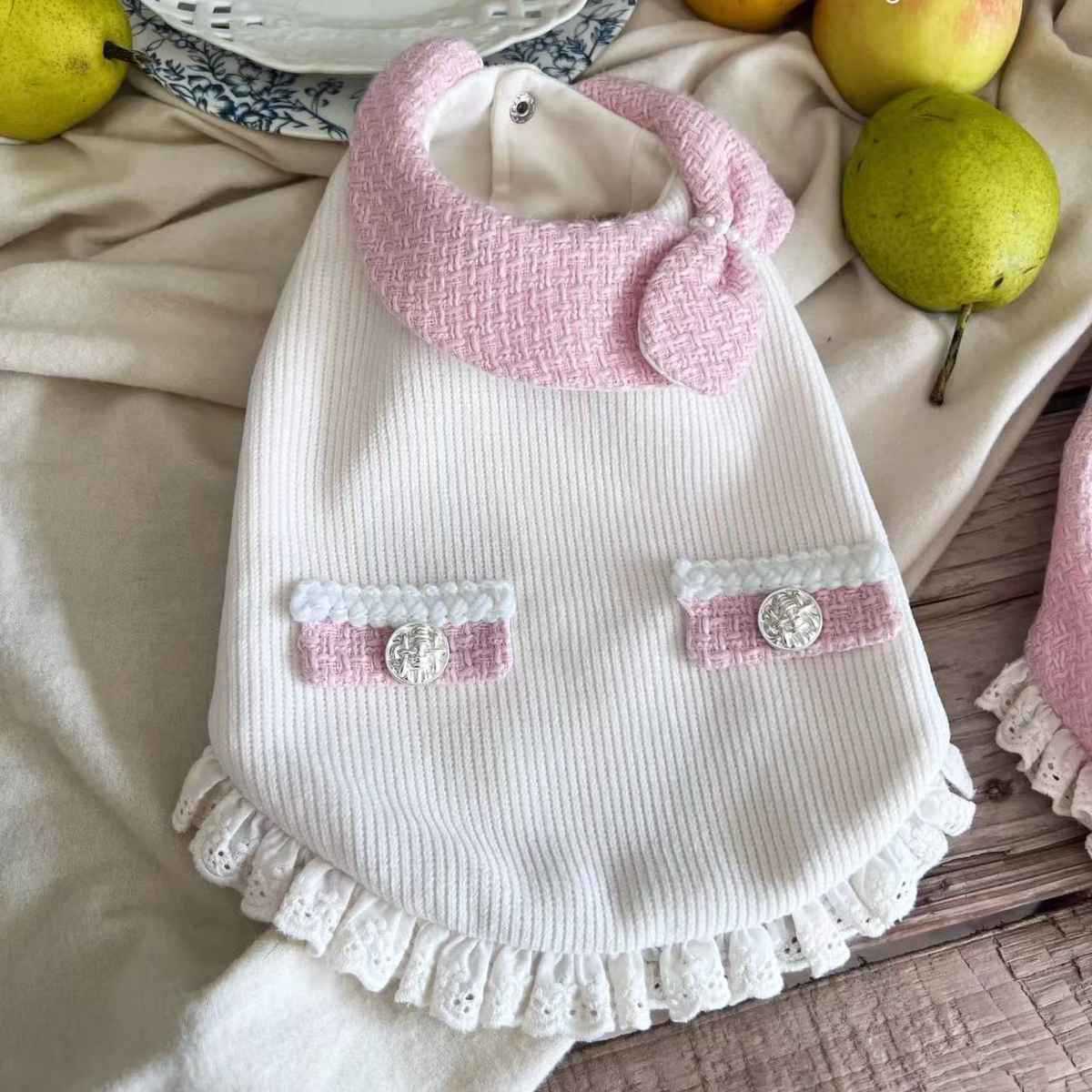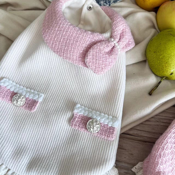 개 옷 가을과 겨울 두꺼운 고양이 공주 원피스 핑크 샤넬 스타일 작은 개 테디 애완 동물 비터
