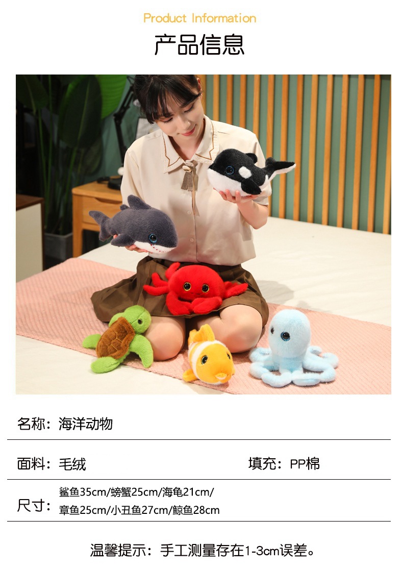 바다 동물 거북이 문어 인형 봉제 장난감 살인자 고래 바다 사자 인형 어린이 진정 머펫 인형