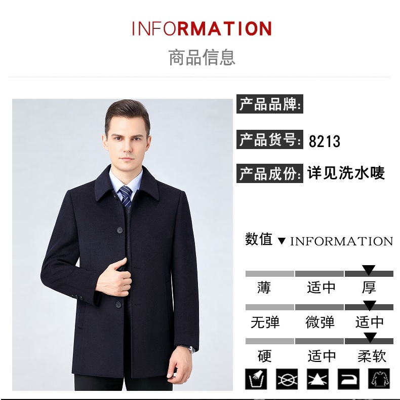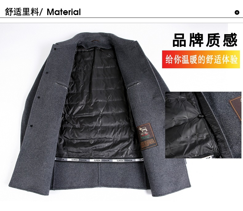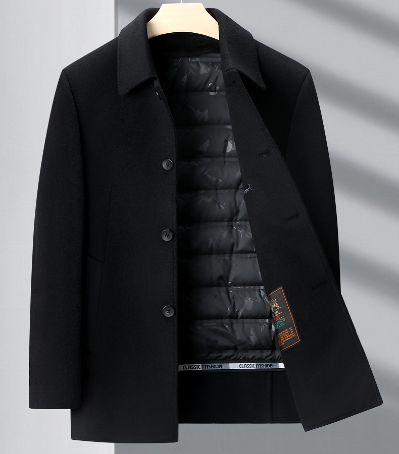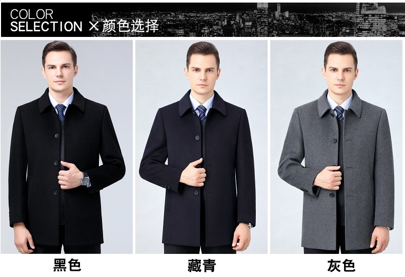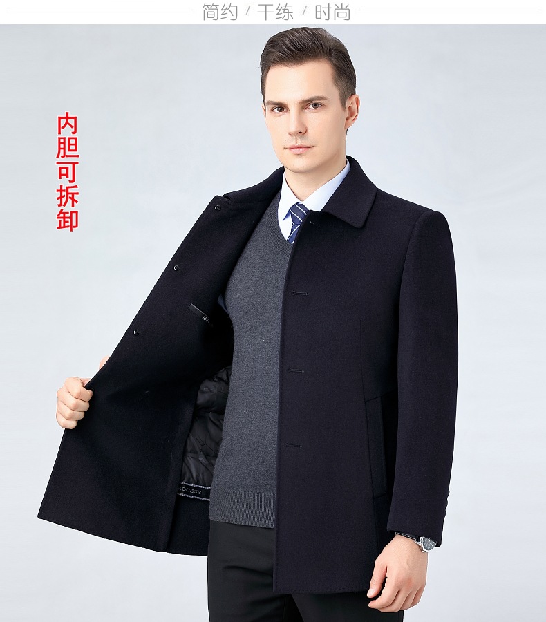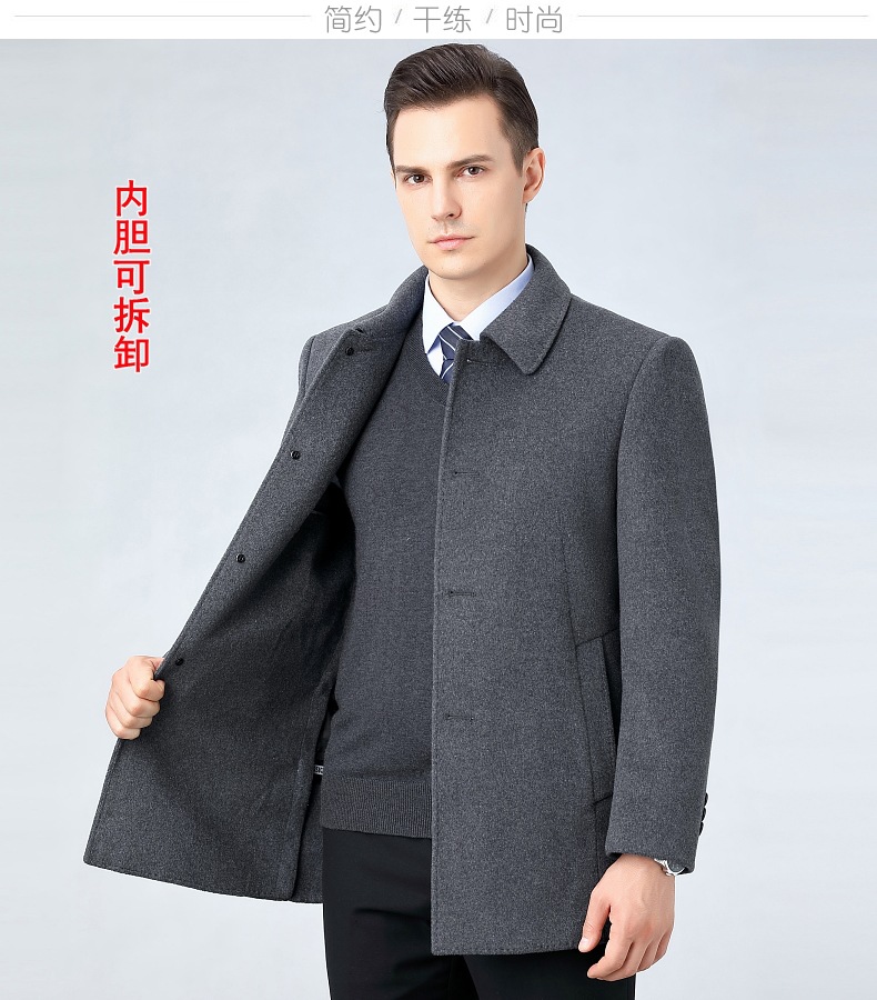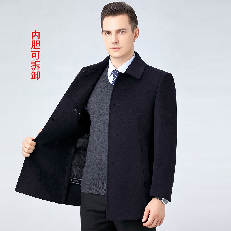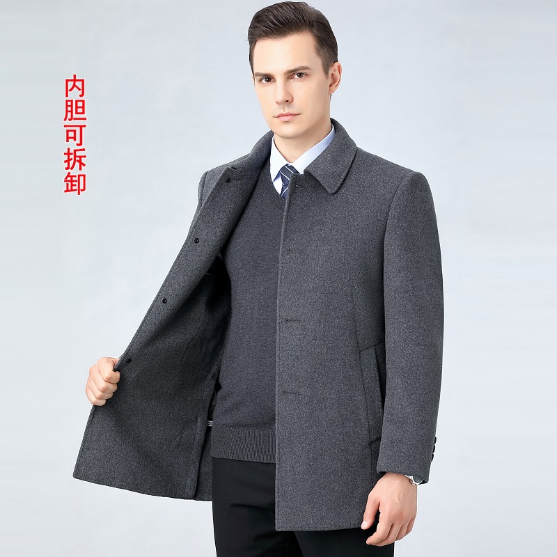 카운터 다운 라이너 분리 가능한 양모 양면 중장 코트 비즈니스 중년 아빠 남자 따뜻한 재킷