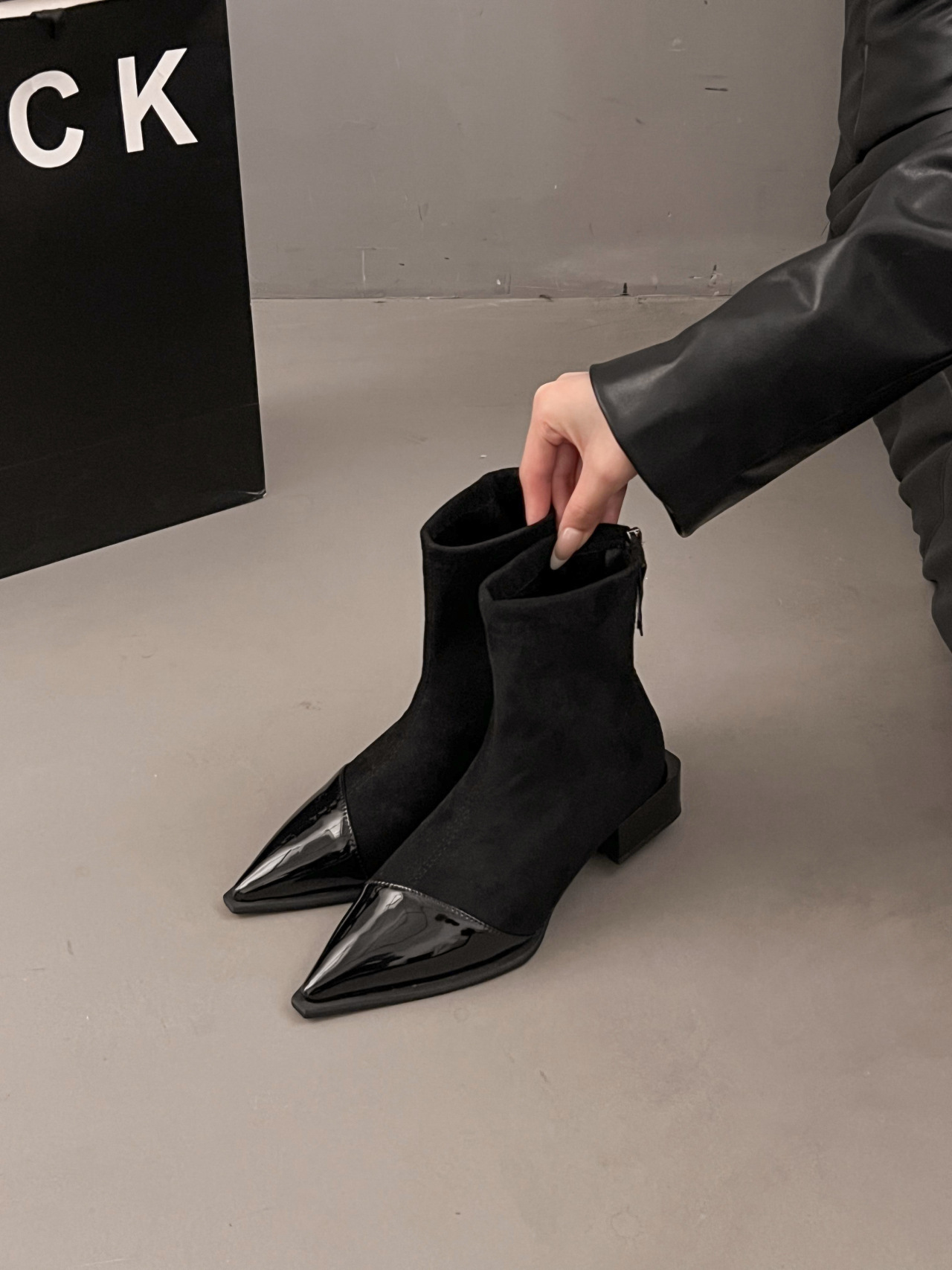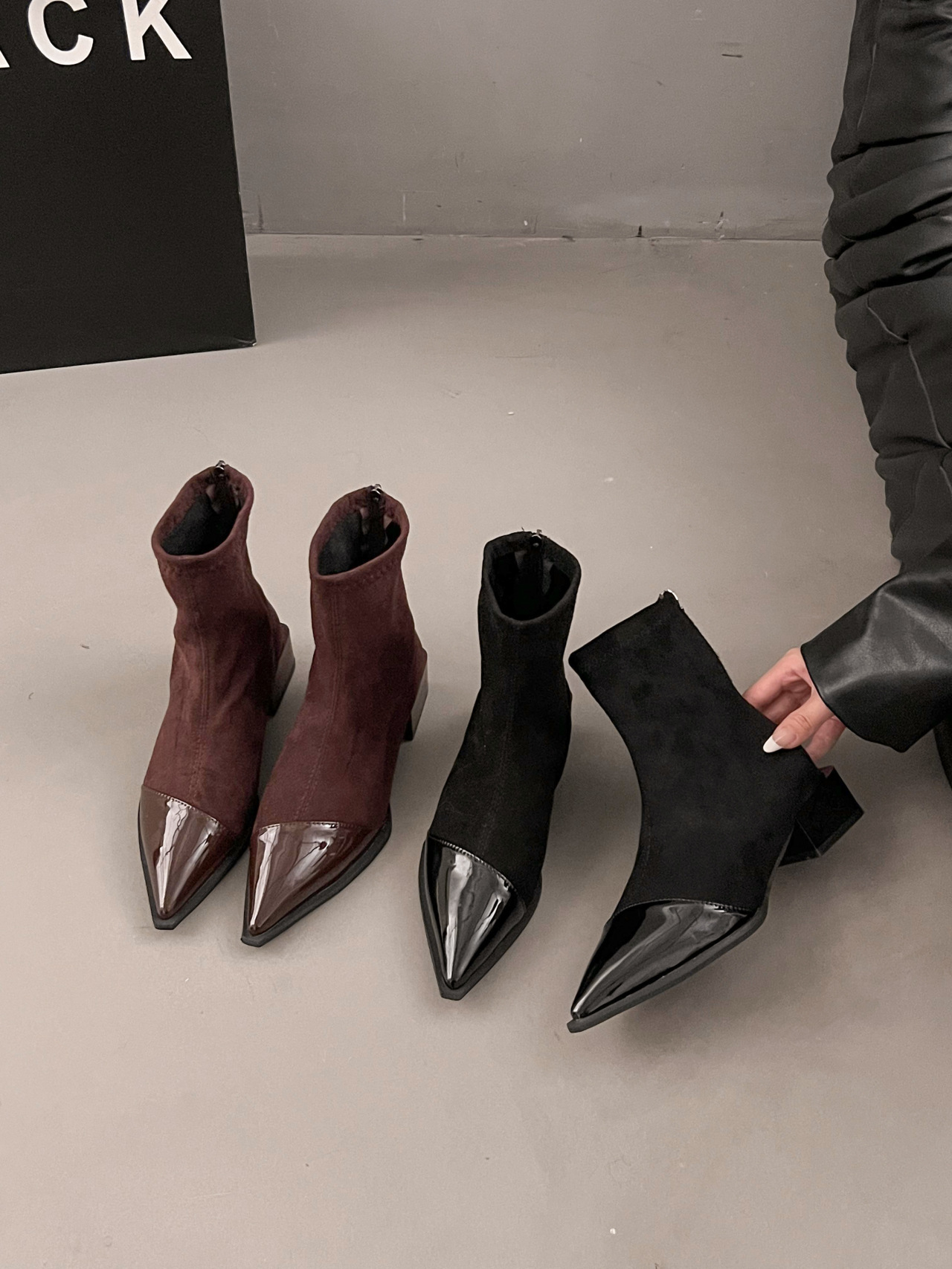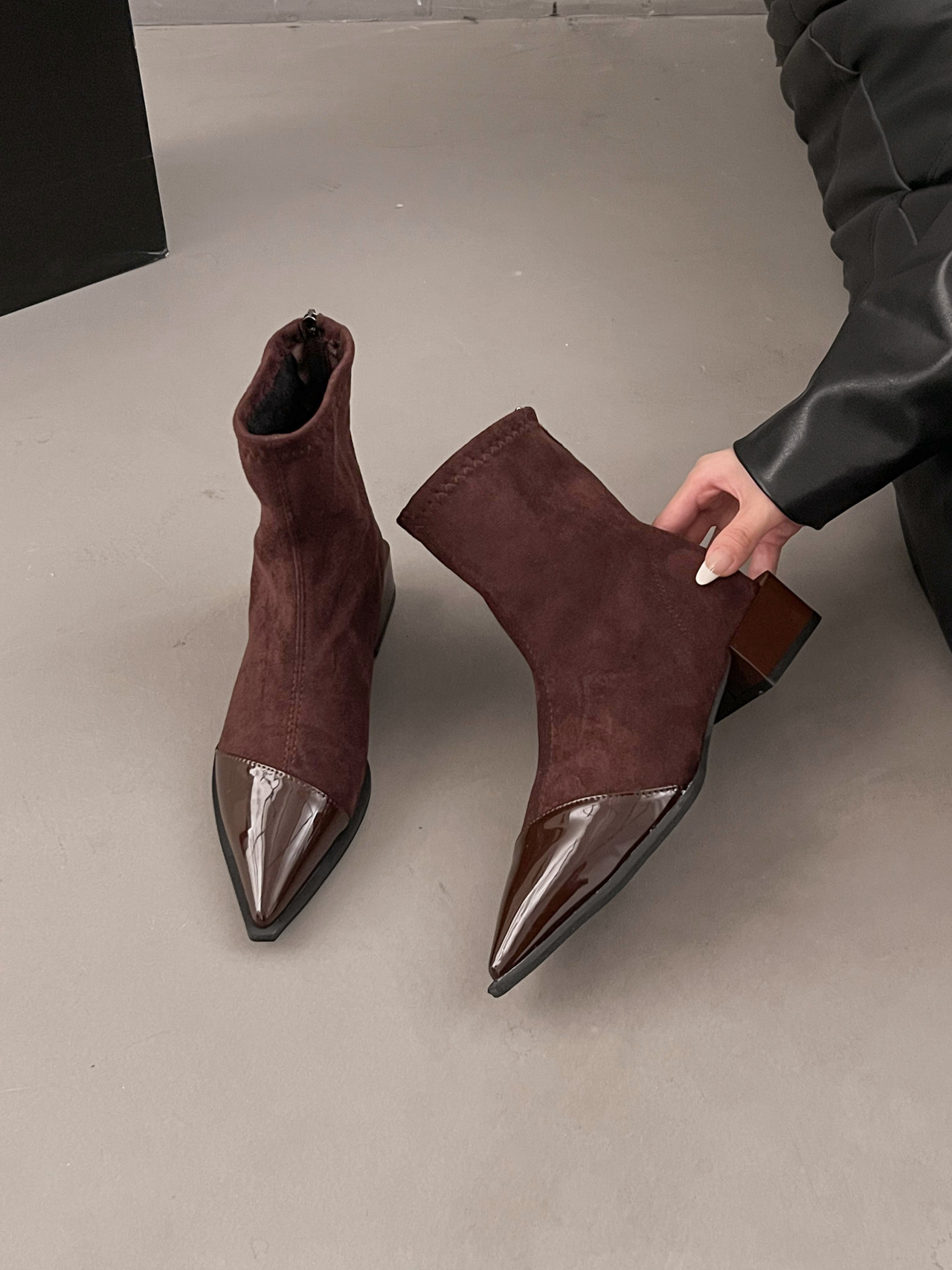 스웨이드 뾰족한 서양식 작은 발목 부츠 플러스 사이즈 여성 신발 2024 프랑스 가을 겨울 원피스 한국식 작은 발목 부츠스토어 가기