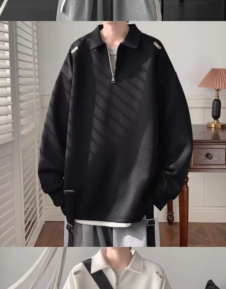 기능성 스트랩 하프 Zip 스웨터 남성용 가을 무거운 하드 폴로 셔츠 유행 브랜드 유행 느슨한 재킷