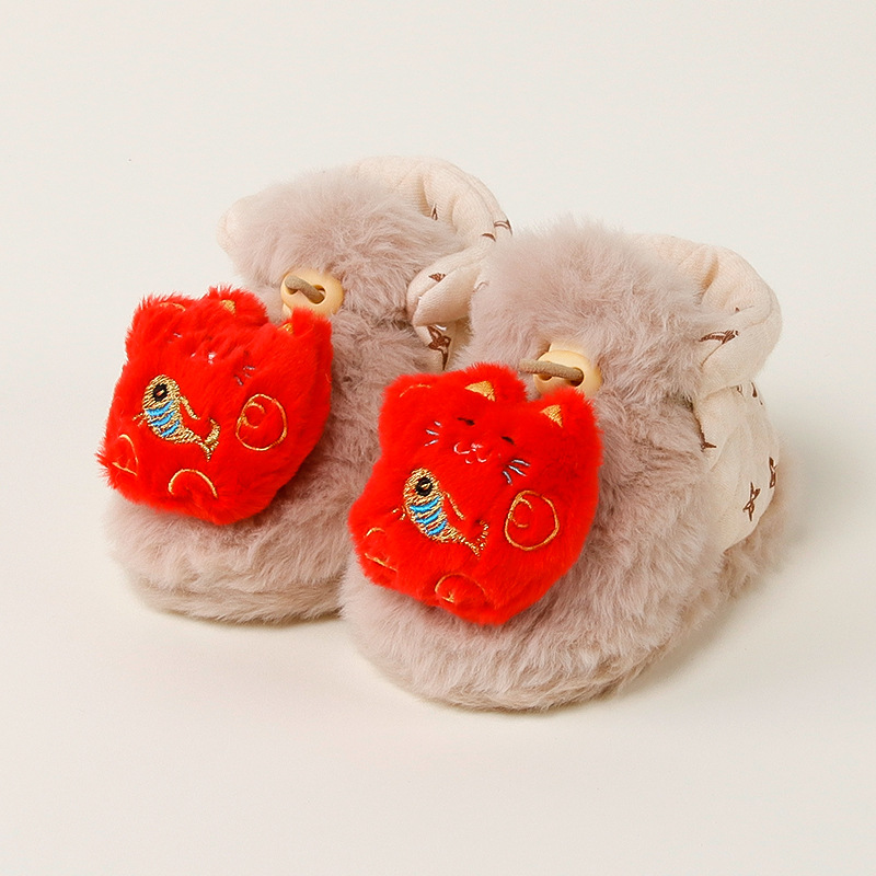 아기의 가을과 겨울 두꺼운 따뜻한 봉제 유아 신발 양말 만화 모피 신발 어린이 아기 신발 커버 바닥 양말