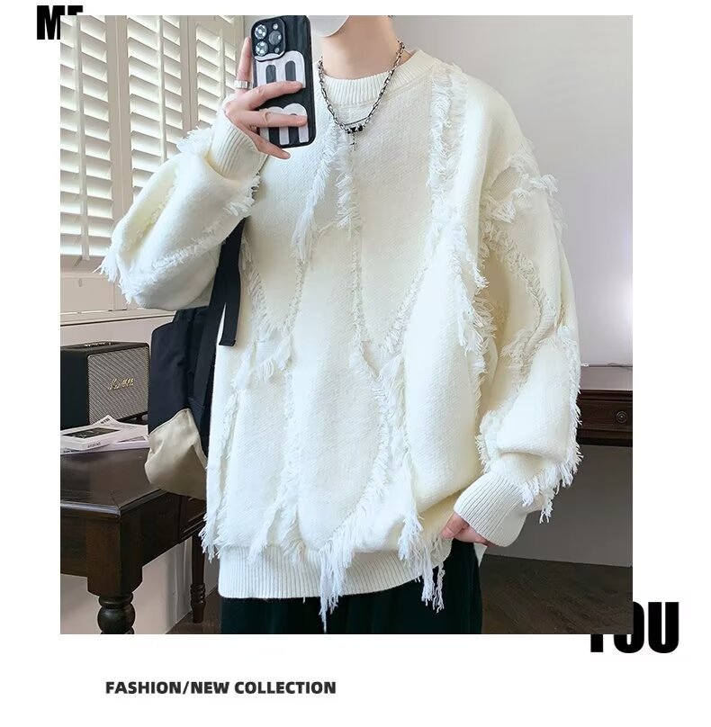 Tassel Crewneck 스웨터 남성용 아메리칸 스타일 게으른 스타일 디자인 센스 가을과 겨울 패션 브랜드 파괴 센스 스웨터 재킷스토어 가기