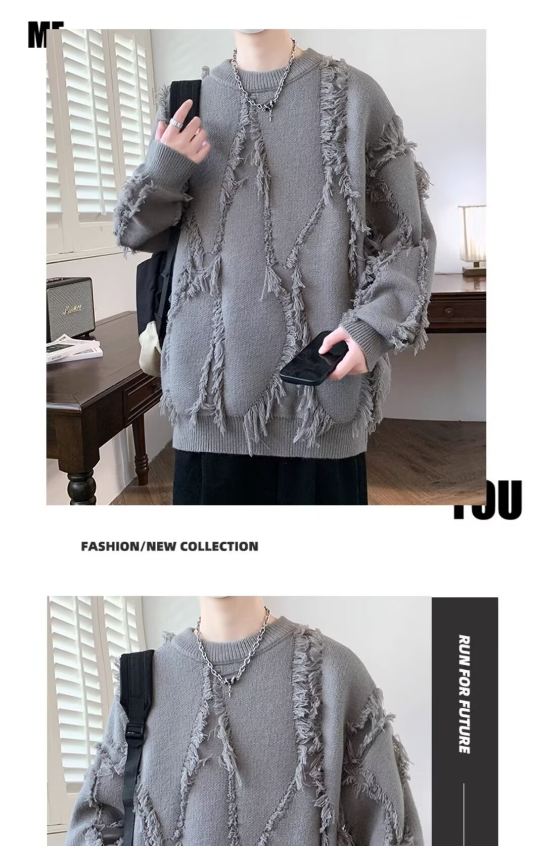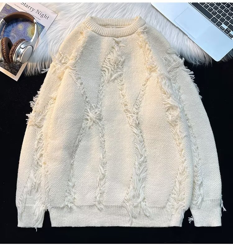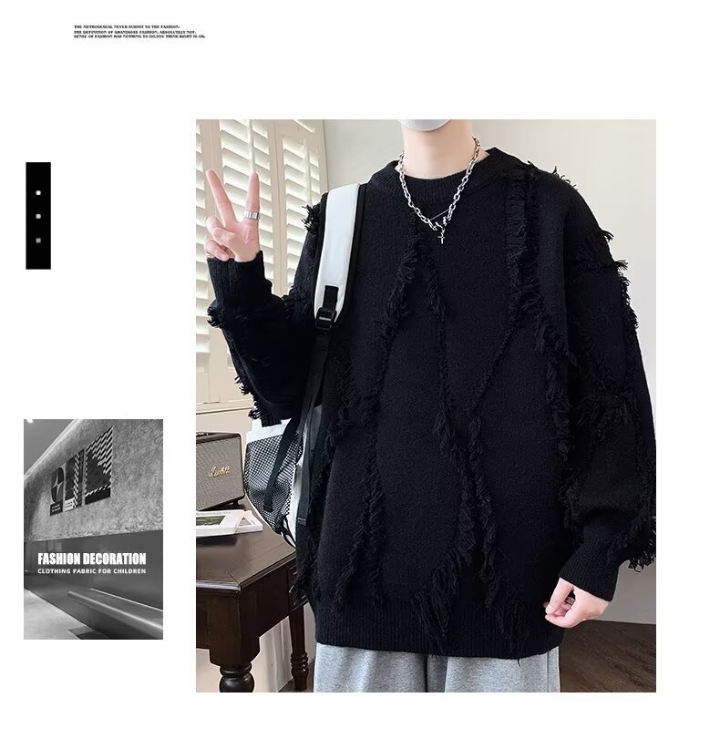 Tassel Crewneck 스웨터 남성용 아메리칸 스타일 게으른 스타일 디자인 센스 가을과 겨울 패션 브랜드 파괴 센스 스웨터 재킷