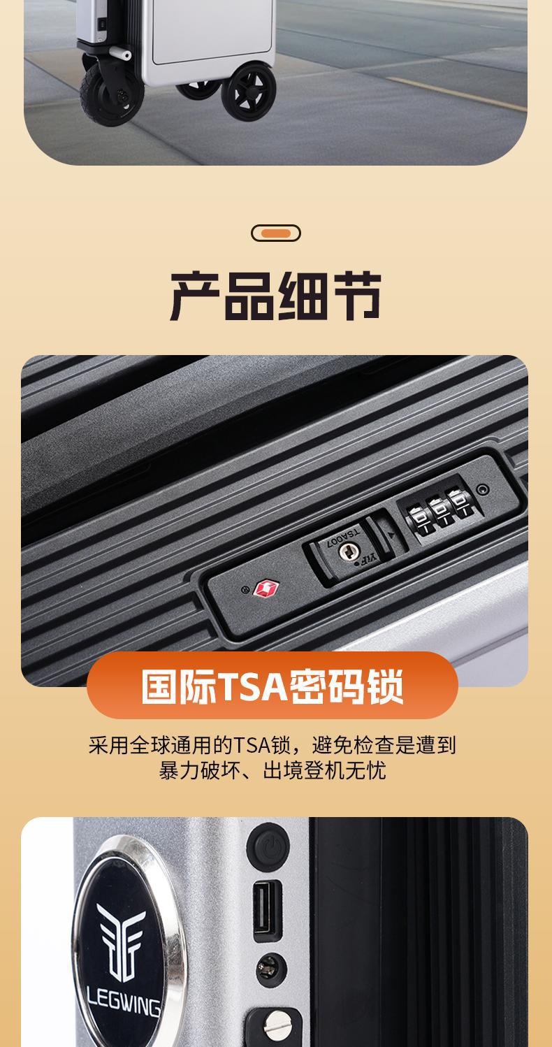 여행 윙 LEGWING은 여행 수하물 케이스에 탑승 할 수있는 20 인치 지능형 전기 수하물을 탈 수 있습니다.