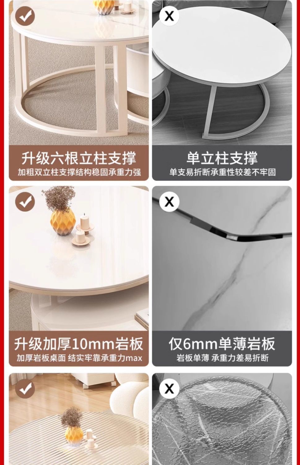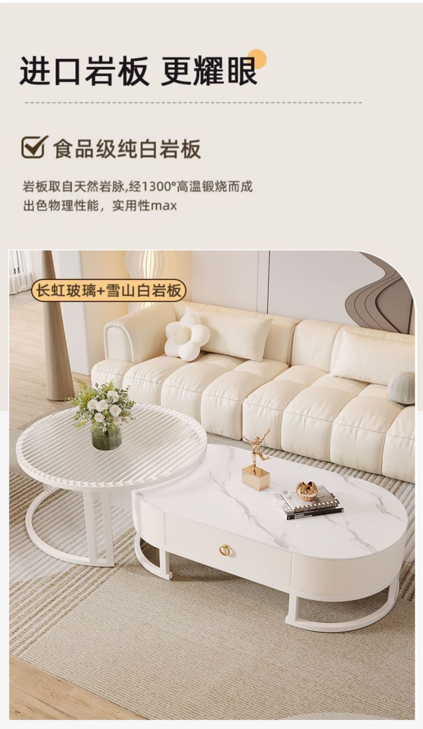 • 120+80cm丨9mm 광택 슬레이트 더블 커피 테이블 조합
