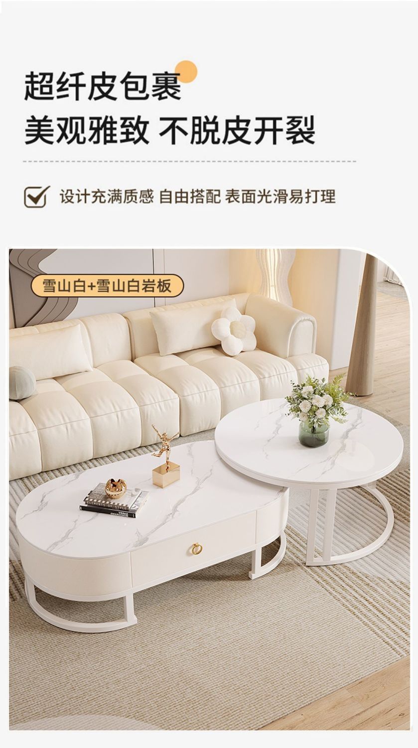 • 100+70cm丨9mm 광택 슬레이트 더블 커피 테이블 조합