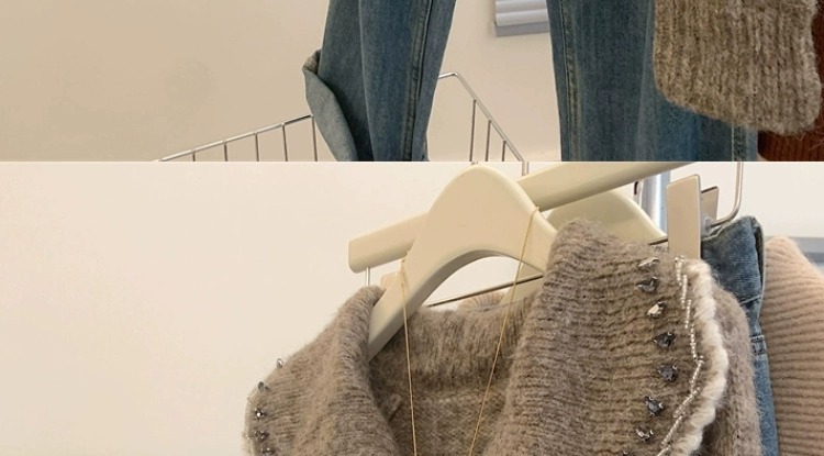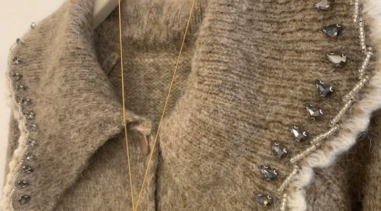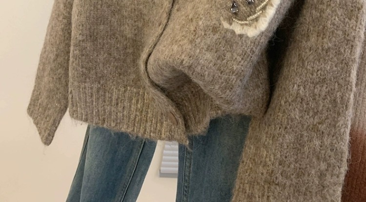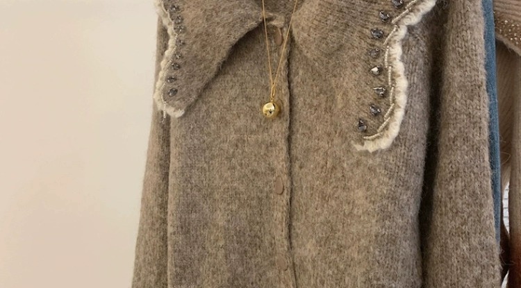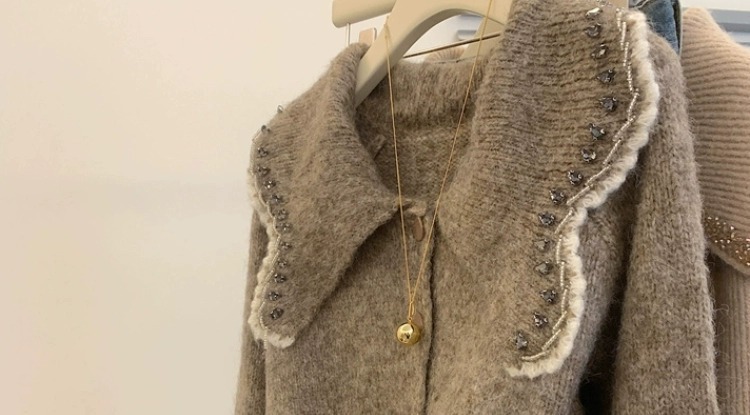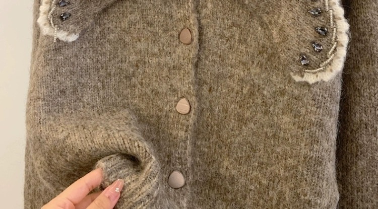 우아한 고급 샤넬 스타일 라싱 칼라 니트 스웨터 여성 가을 및 겨울 중공업 레트로 밀크 후후 대형 옷깃 스웨터 카디건스토어 가기