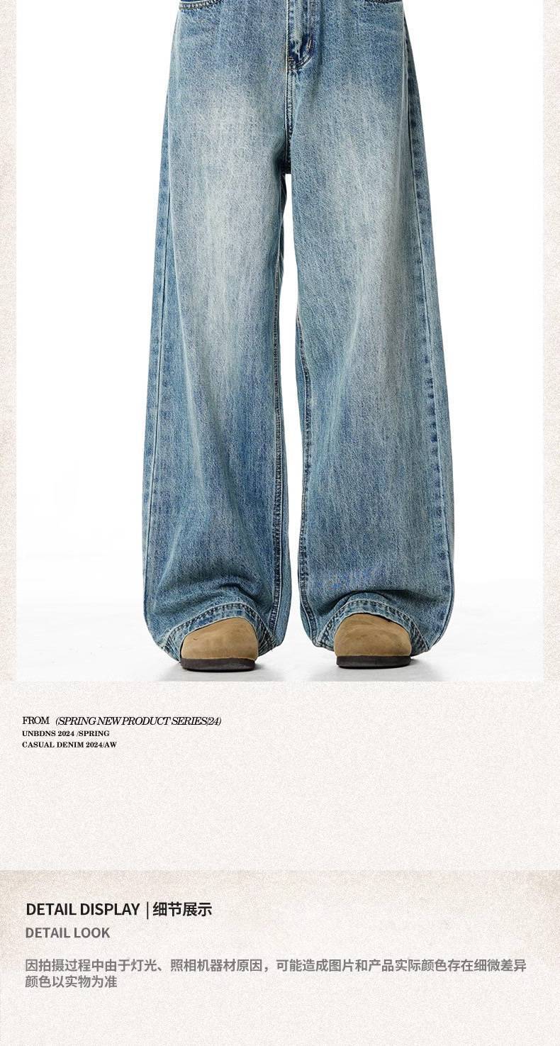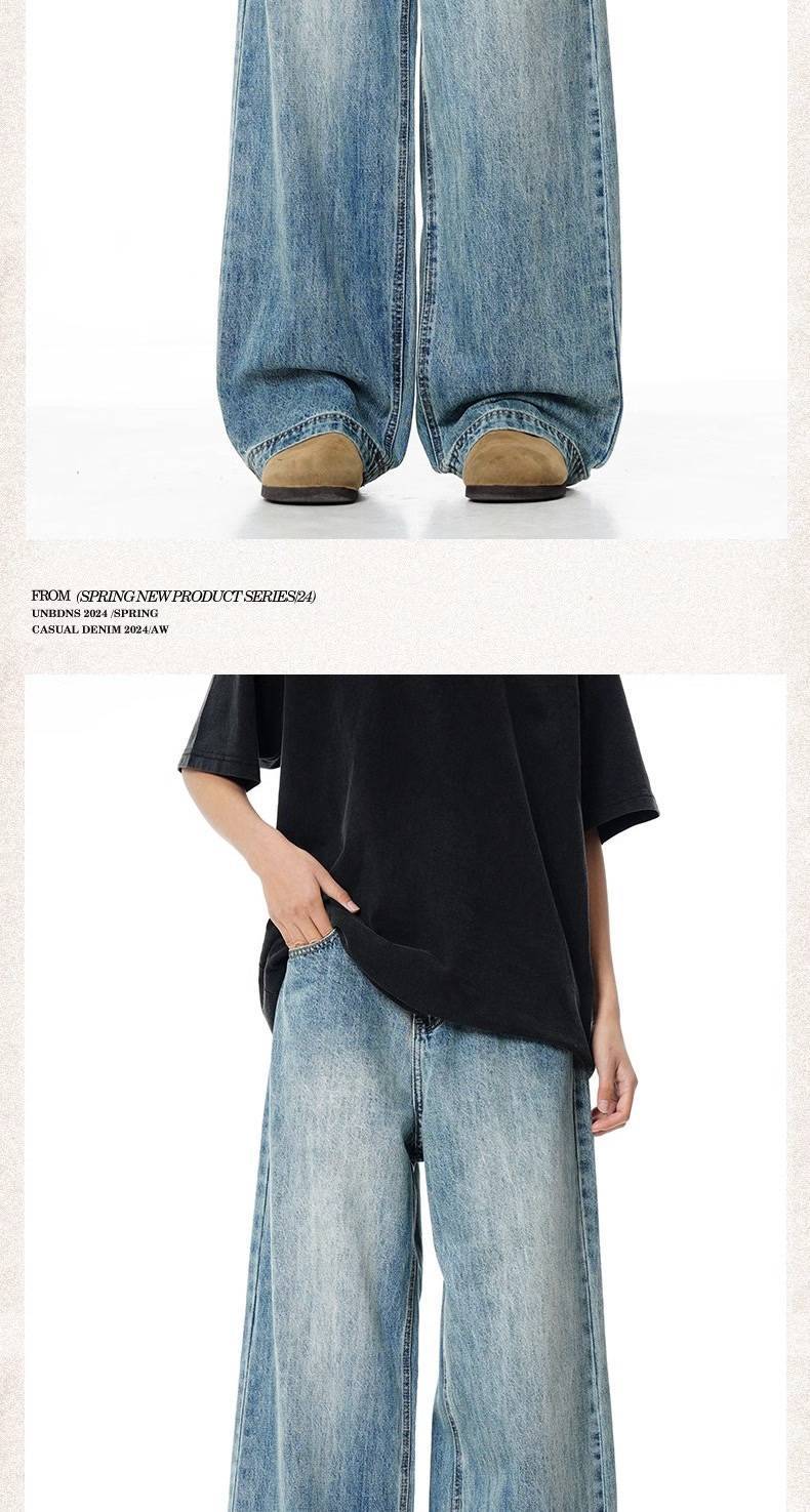 Verborgen 라이트 블루 느슨한 청바지 미국 스타일 하이 스트리트 세척 스트레이트 다리 와이드 클린 핏 긴 바지