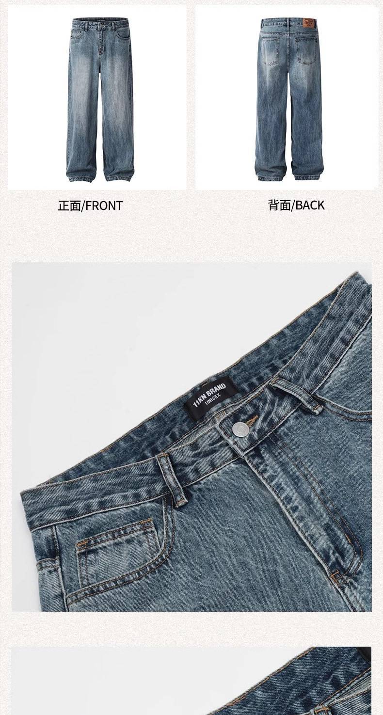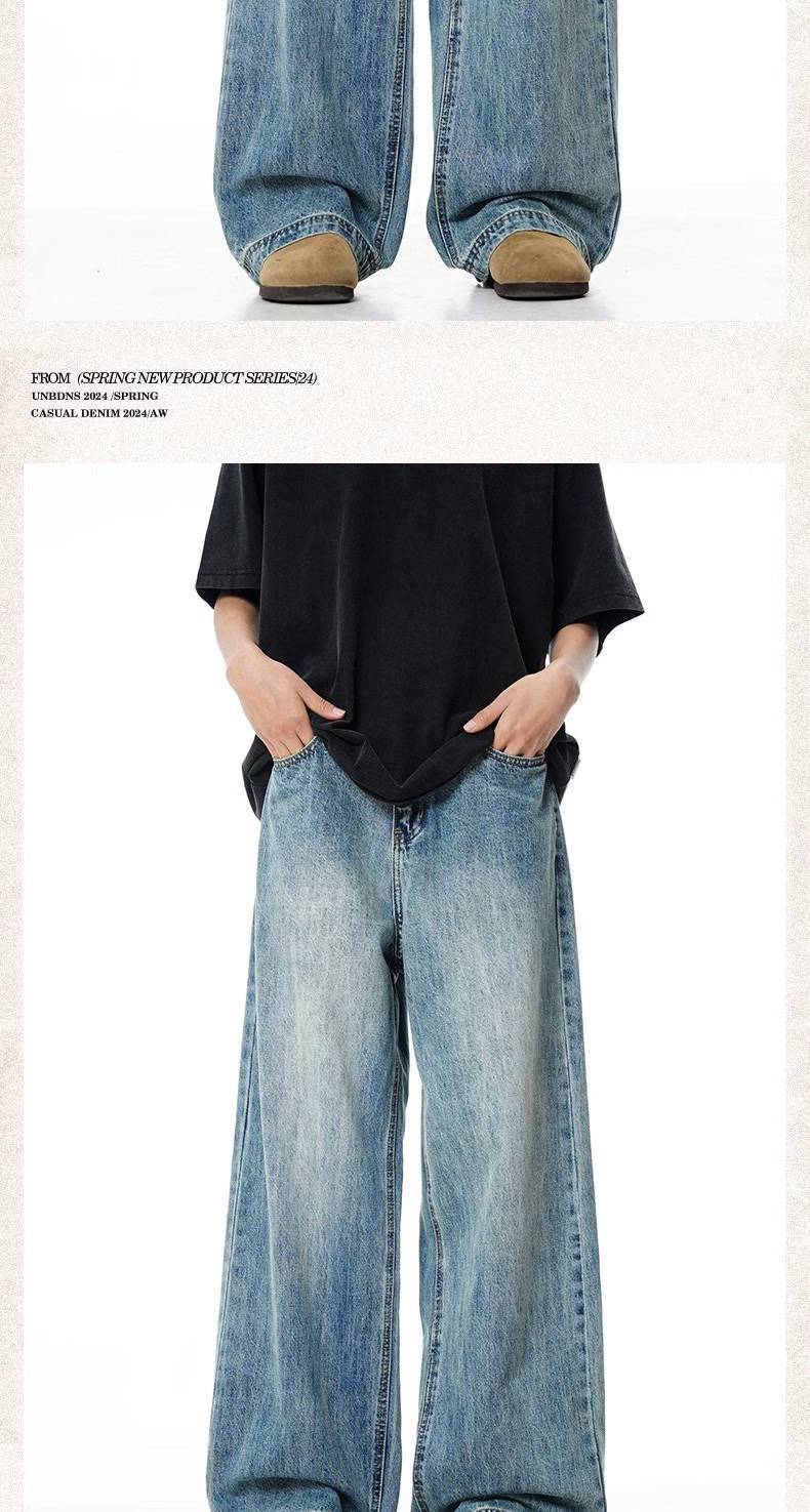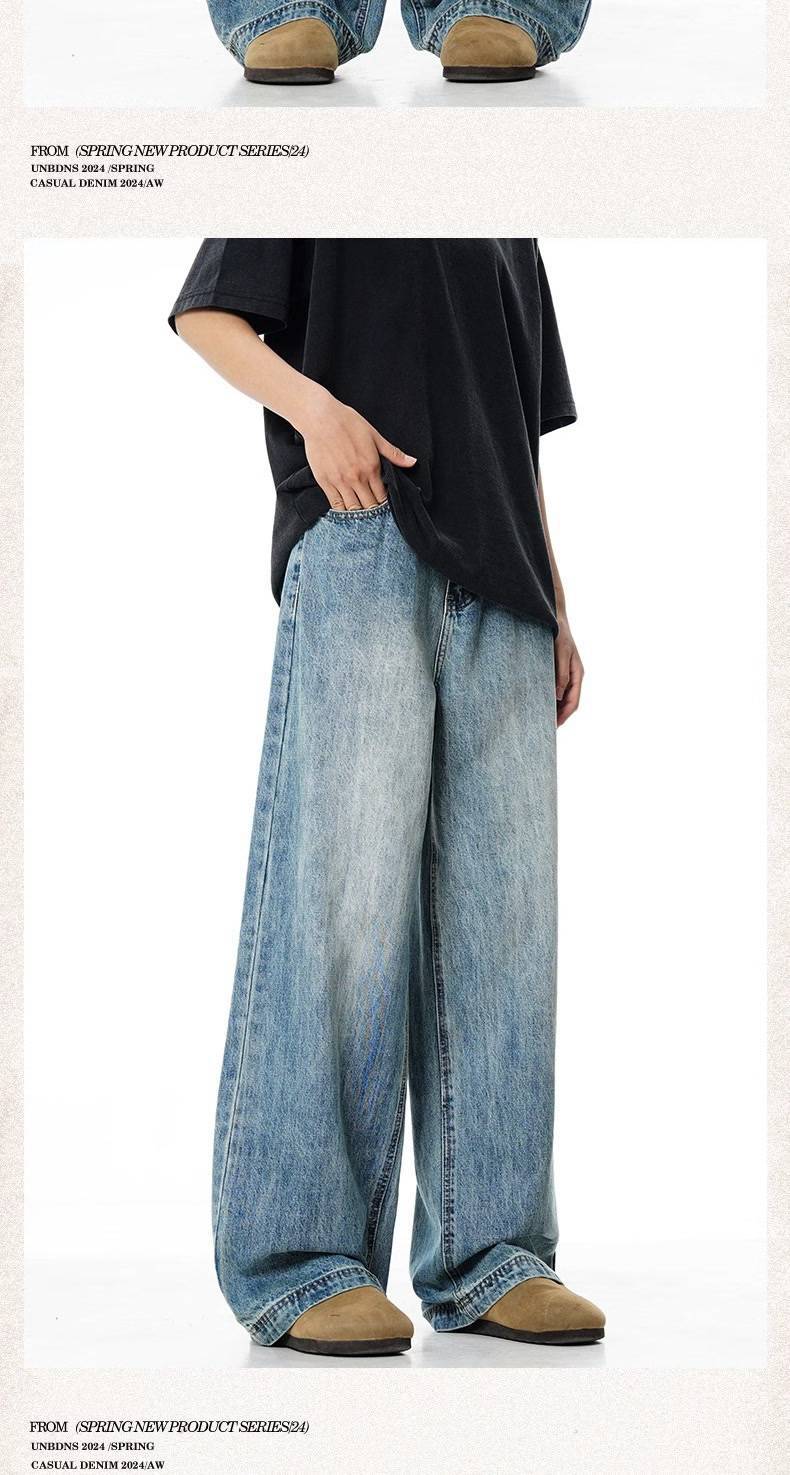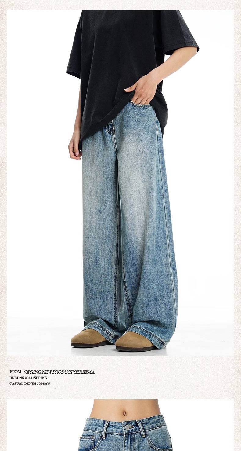 Verborgen 라이트 블루 느슨한 청바지 미국 스타일 하이 스트리트 세척 스트레이트 다리 와이드 클린 핏 긴 바지스토어 가기