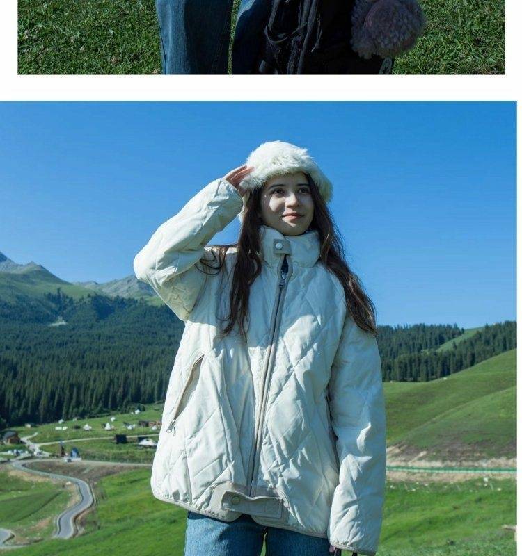 Sistime Down Cotton-padded Jacket 2024 여성의 새로운 패션 느슨한 다이아몬드 격자 무늬 학생면 패딩 코트 윈터 코트
