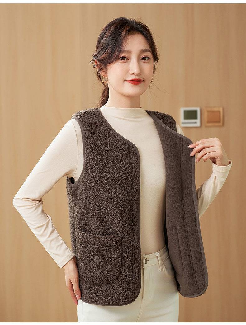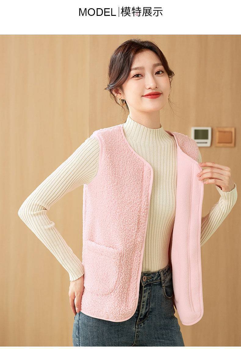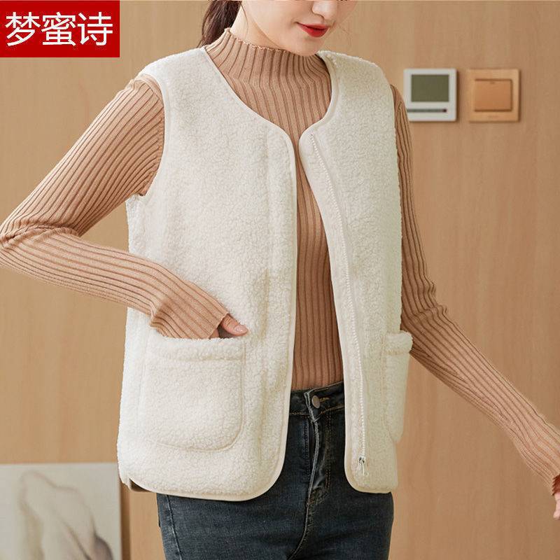 새로운 양고기 벨벳 조끼 올 매치 2024 가을 겨울 외부 따뜻한 슬림 핏 웨이스트 코트 한국 패션 원피스 벨벳스토어 가기