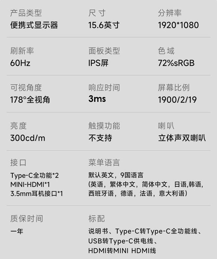 휴대용 디스플레이 15.6inch HDMI 노트북 확장 하이 브러시 휴대 전화 ps4/스위치 고화질 디스플레이 화면스토어 가기