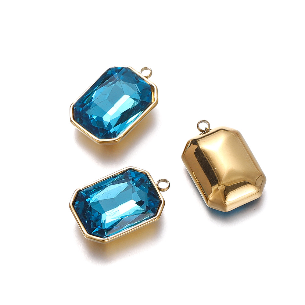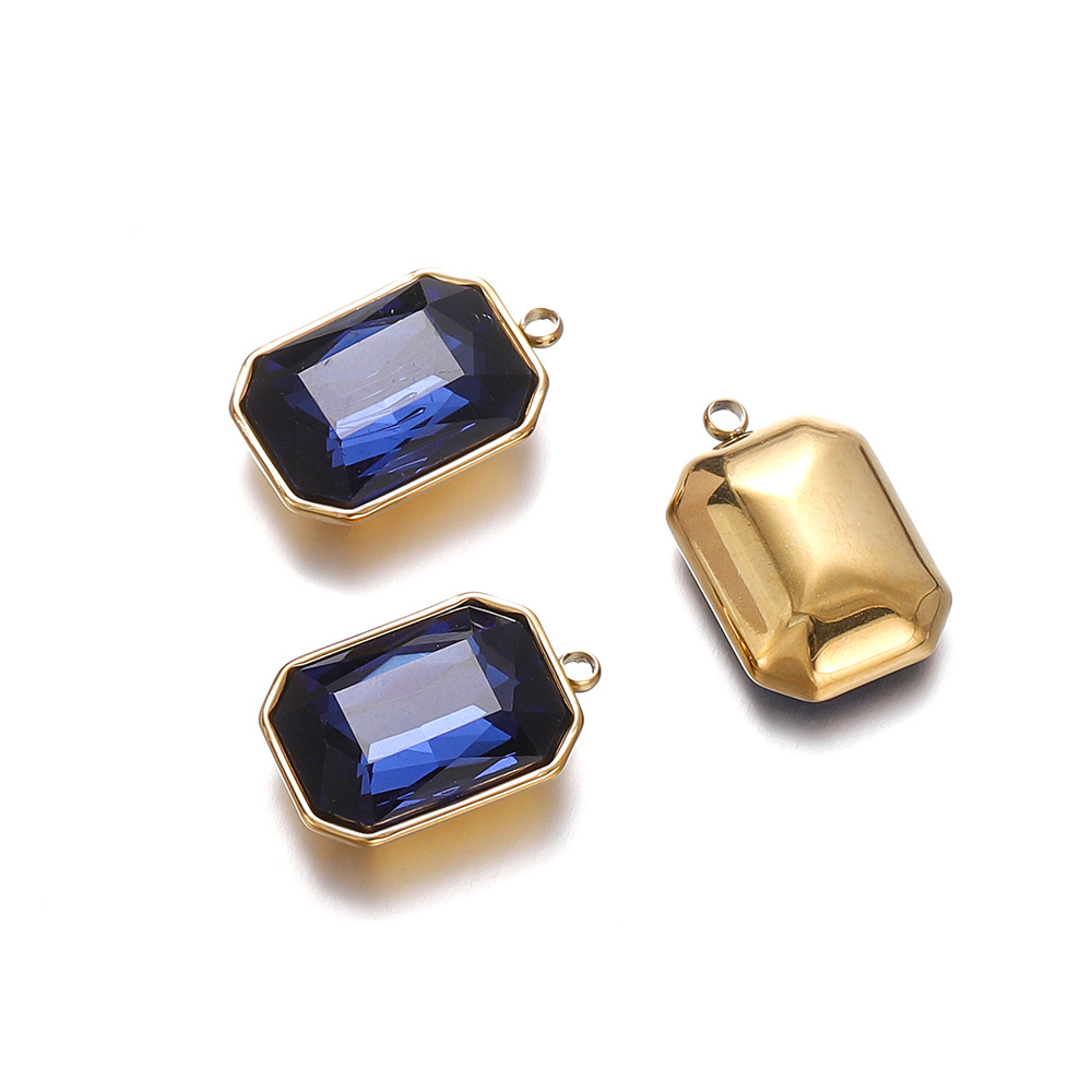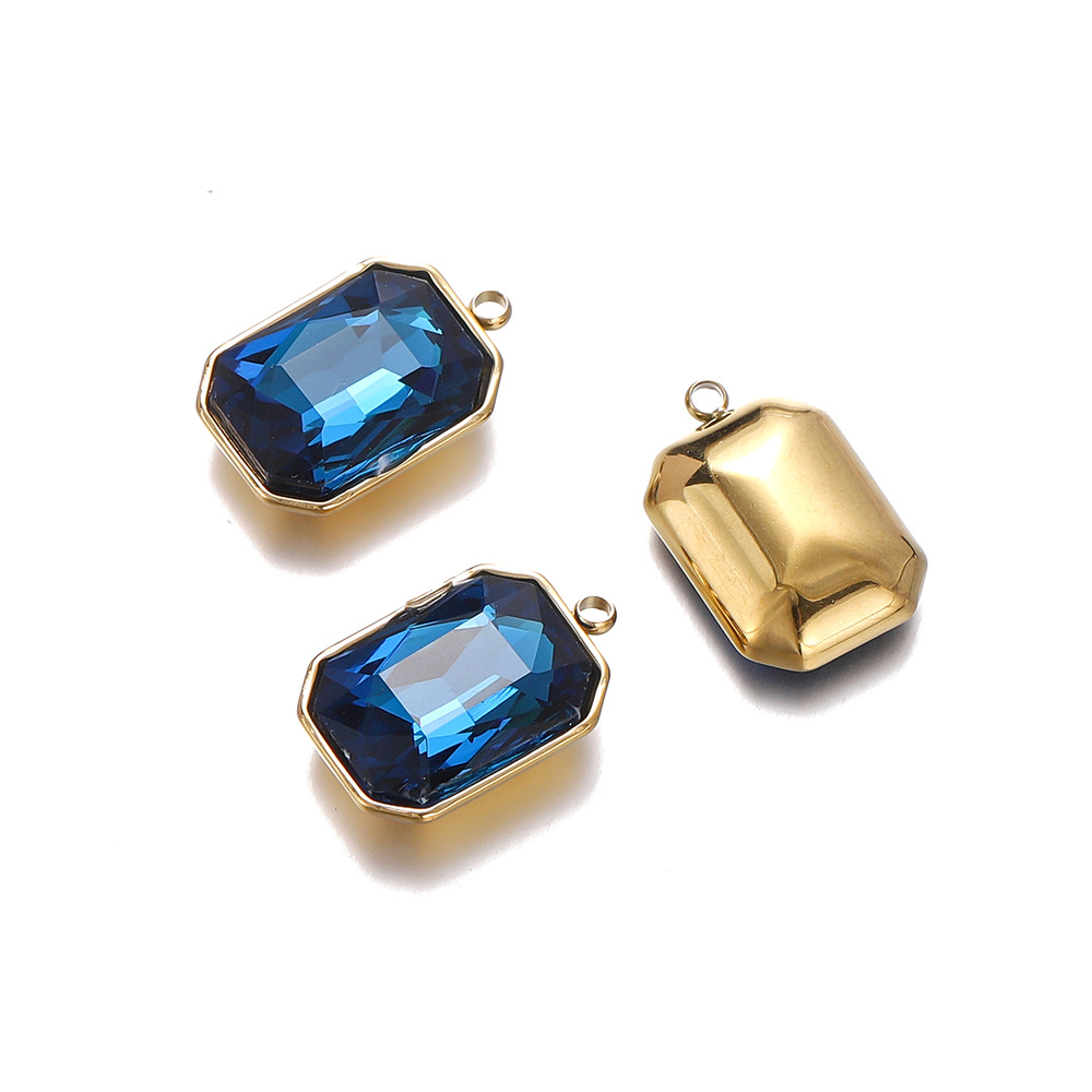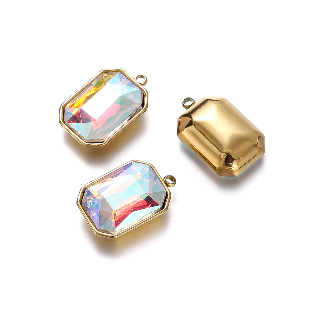 패션 간단한 직사각형 스테인레스 스틸 상감 크리스탈 유리 펜던트 diy 목걸이 귀걸이 보석 소재 도매스토어 가기