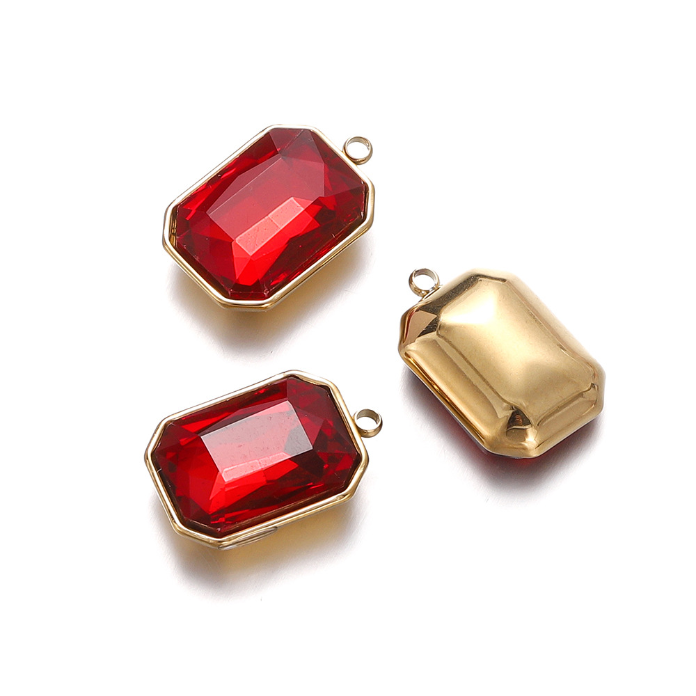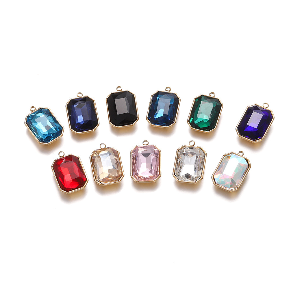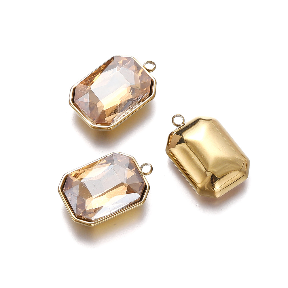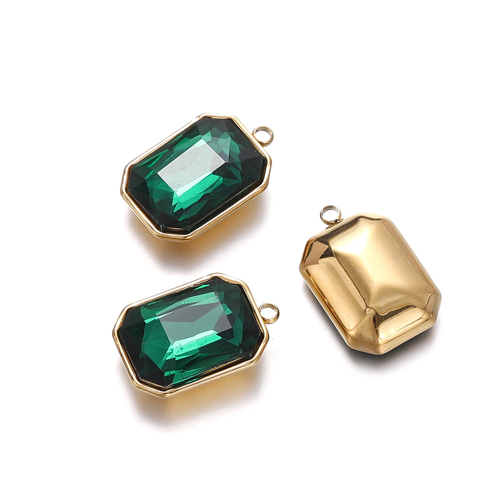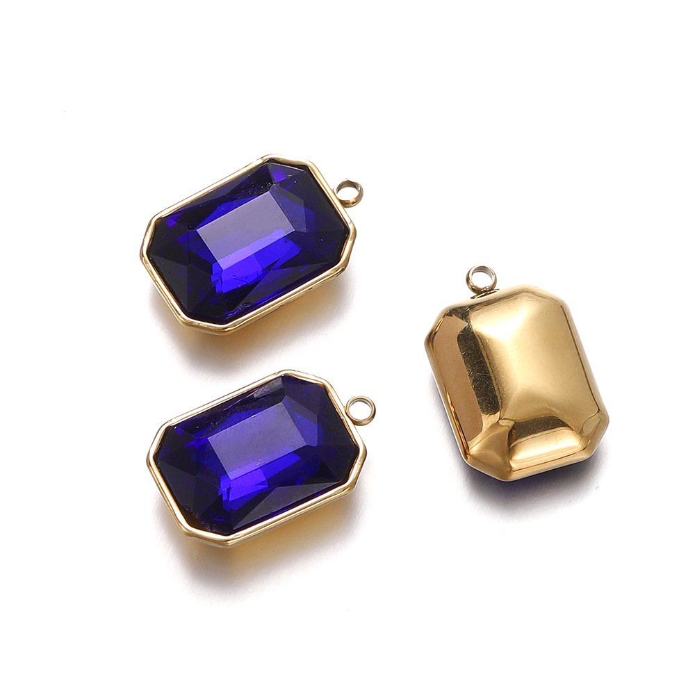 패션 간단한 직사각형 스테인레스 스틸 상감 크리스탈 유리 펜던트 diy 목걸이 귀걸이 보석 소재 도매스토어 가기