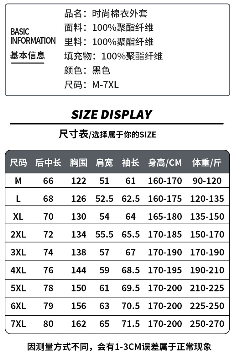 M-7XL 초대형 코튼 패딩 재킷 남성용 밝은면 패딩 코트 가을과 겨울 남성용 편안한 캐주얼 스타일로운면 패딩 재킷 빵 의류