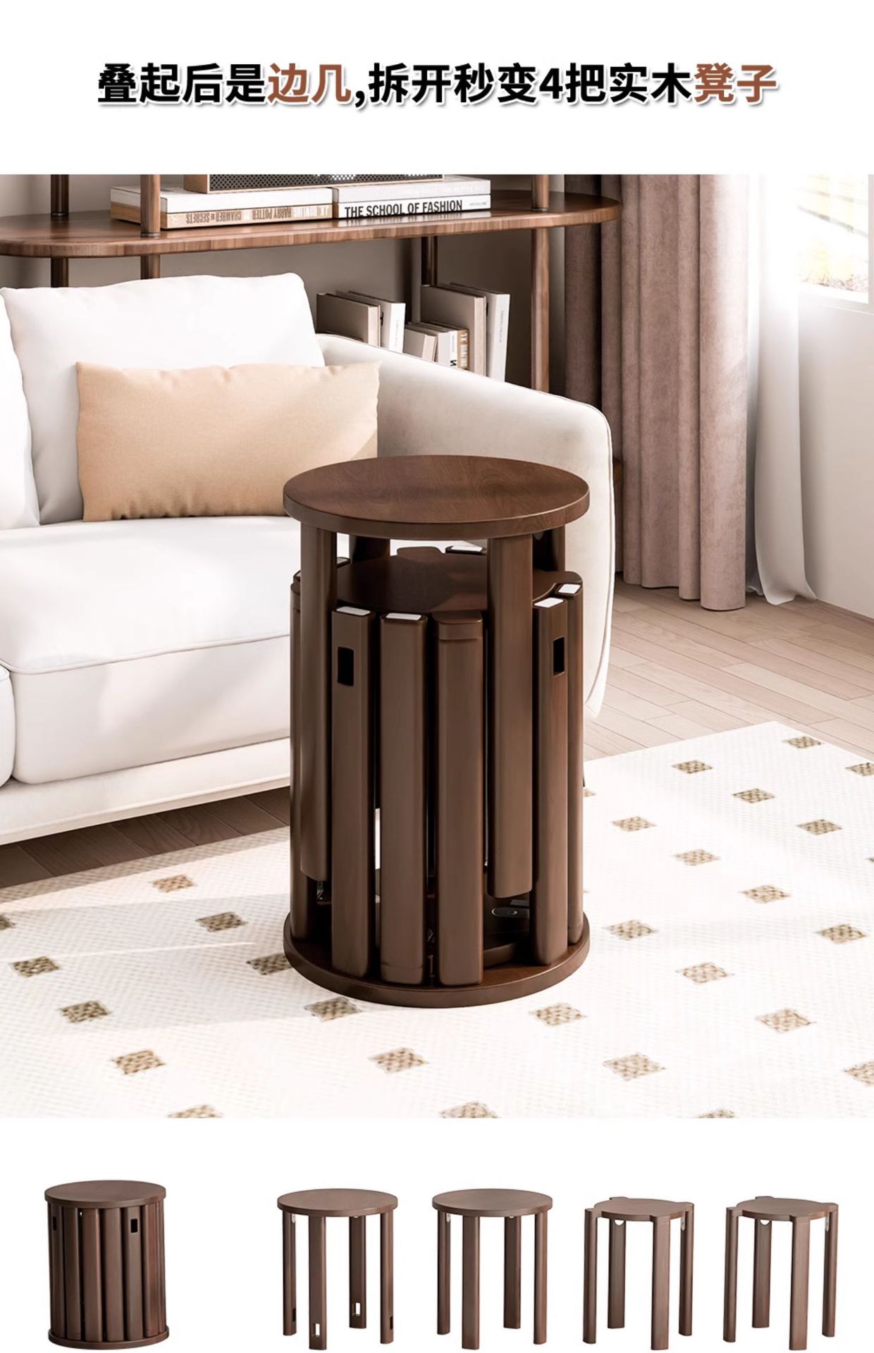 • [업그레이드된 모바일 모델] 월넛 컬러 스태킹 스툴 [플랫]