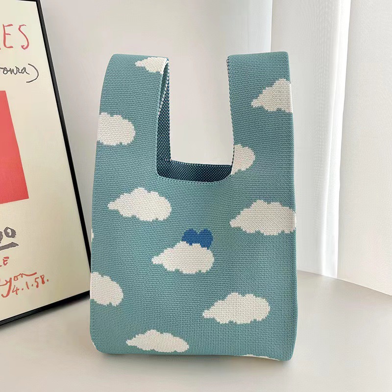 2024 새로운 니트 백 토트 백 모든 매치 핸드박스 런치 백 캐주얼 니트 양모 운반 양동이 가방 인터넷 인기있는 손스토어 가기