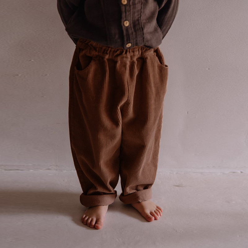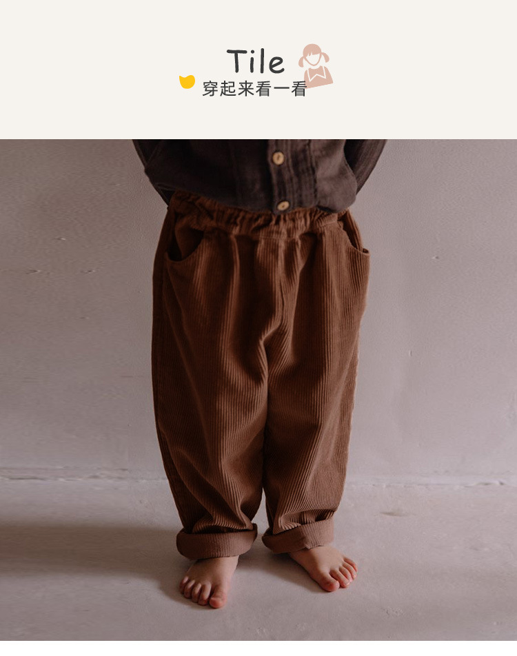 25 새로운 어린이 두꺼운 코듀로이 바지 복고풍 남성과 여성의 아기 바지 가을, 겨울 느슨한 탄성 허리 당근 바지스토어 가기