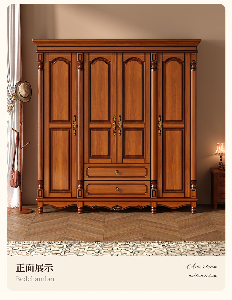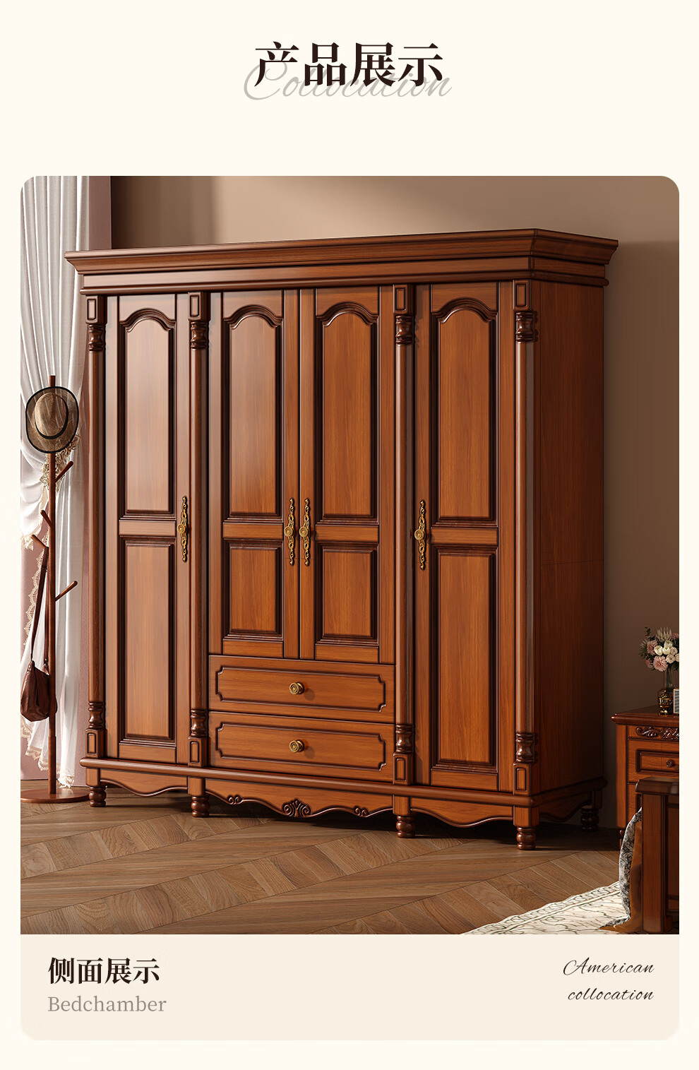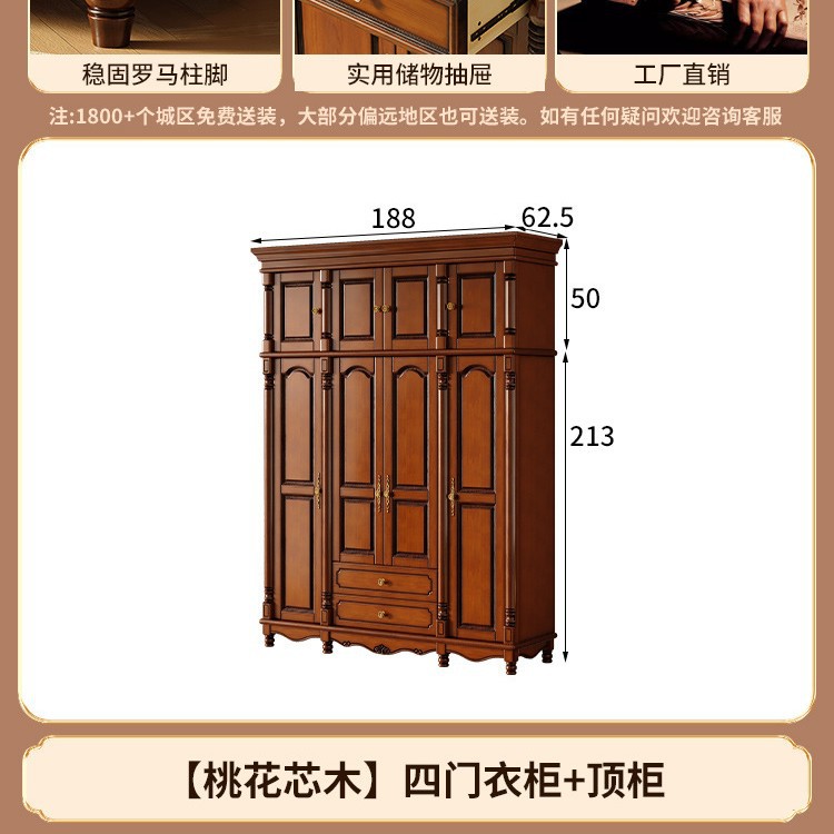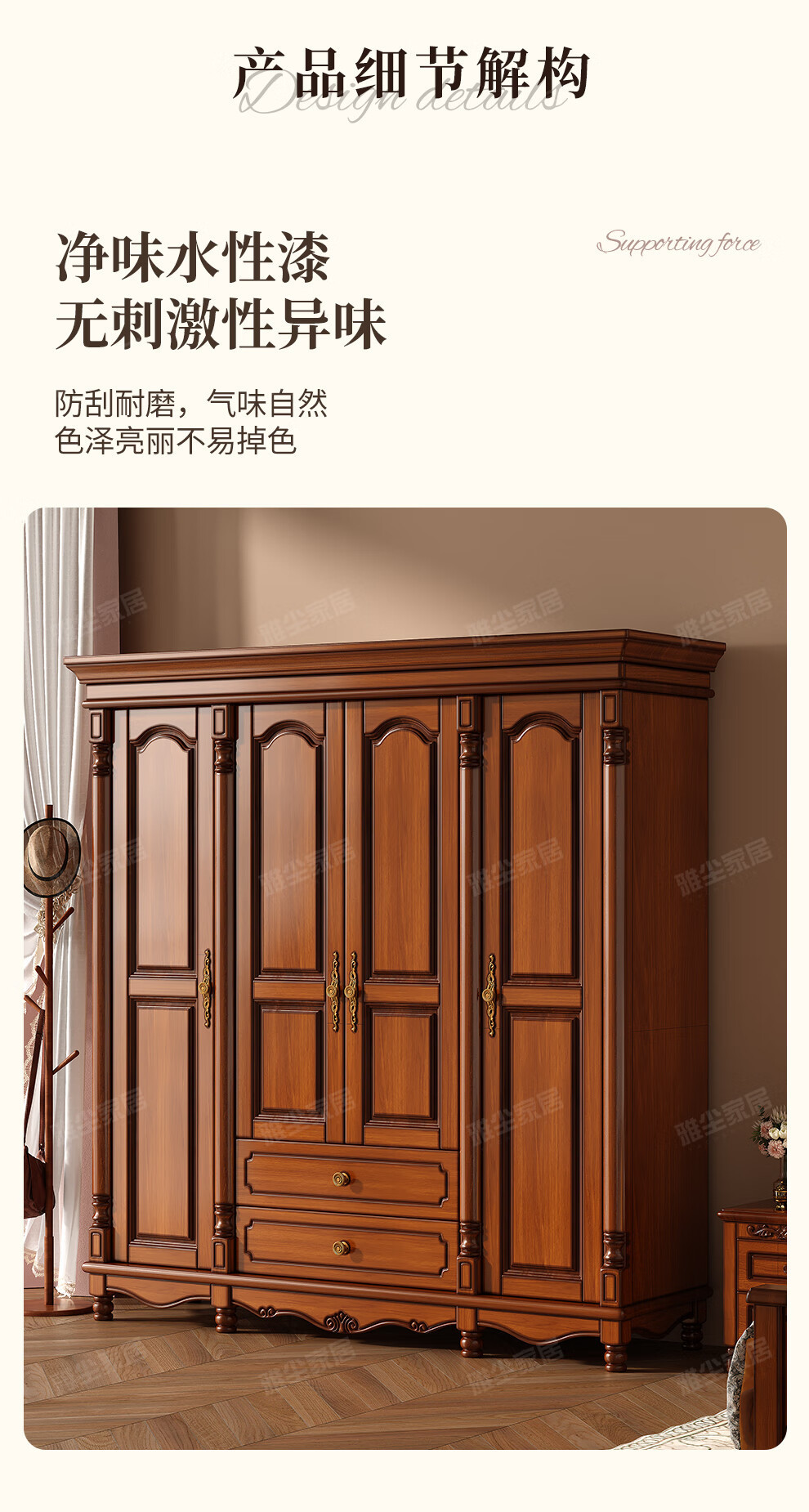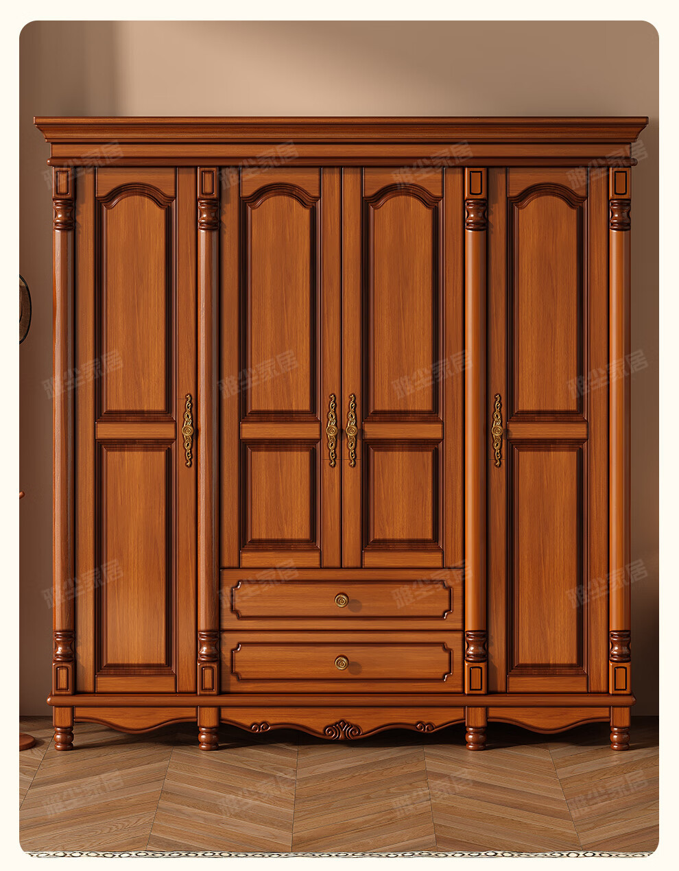아메리칸 스타일 레트로 솔리드 우드 옷장 반대 문 4 도어 옷장 탑 캐비닛 마스터 침실 실내 대용량 저장 캐비닛