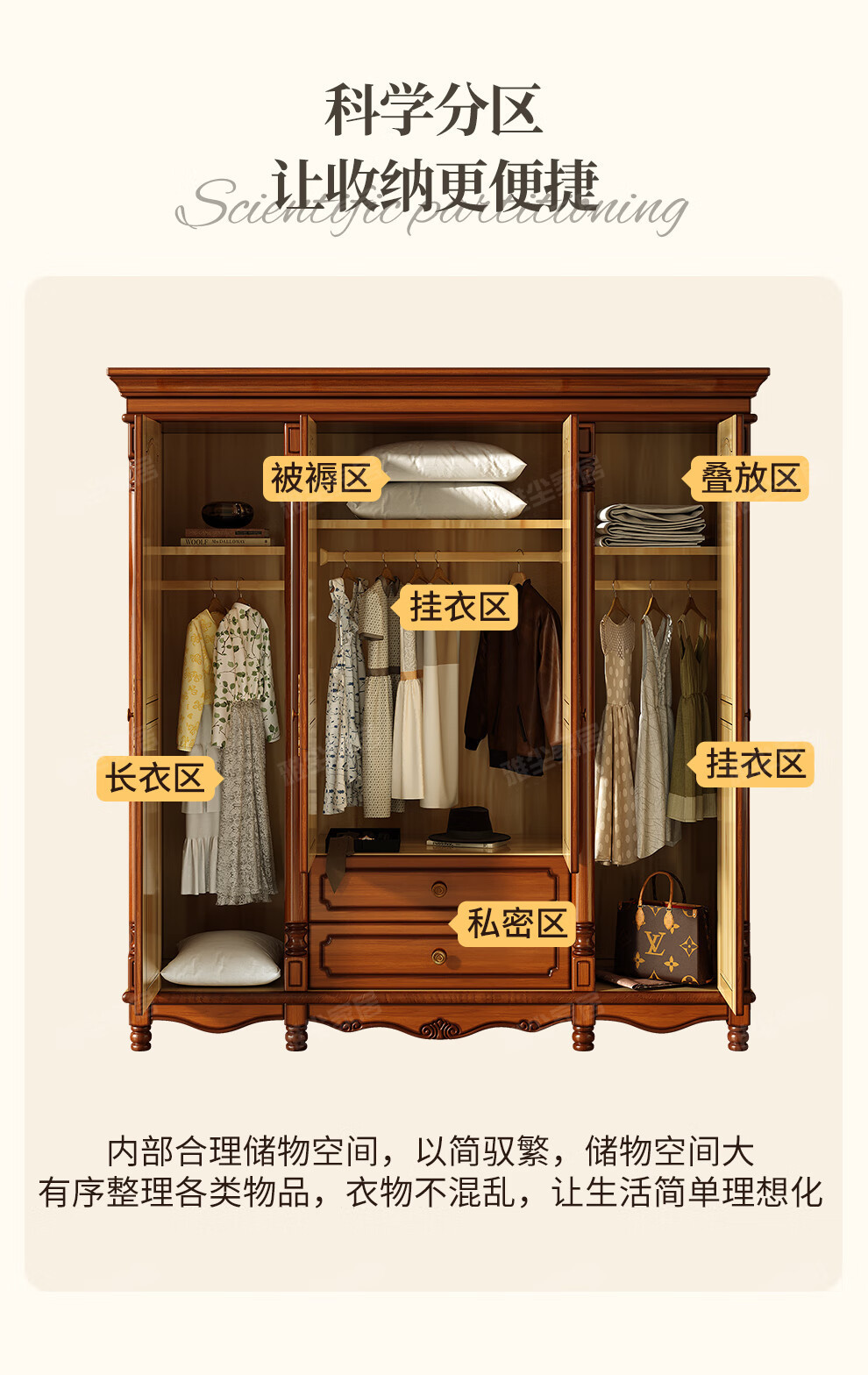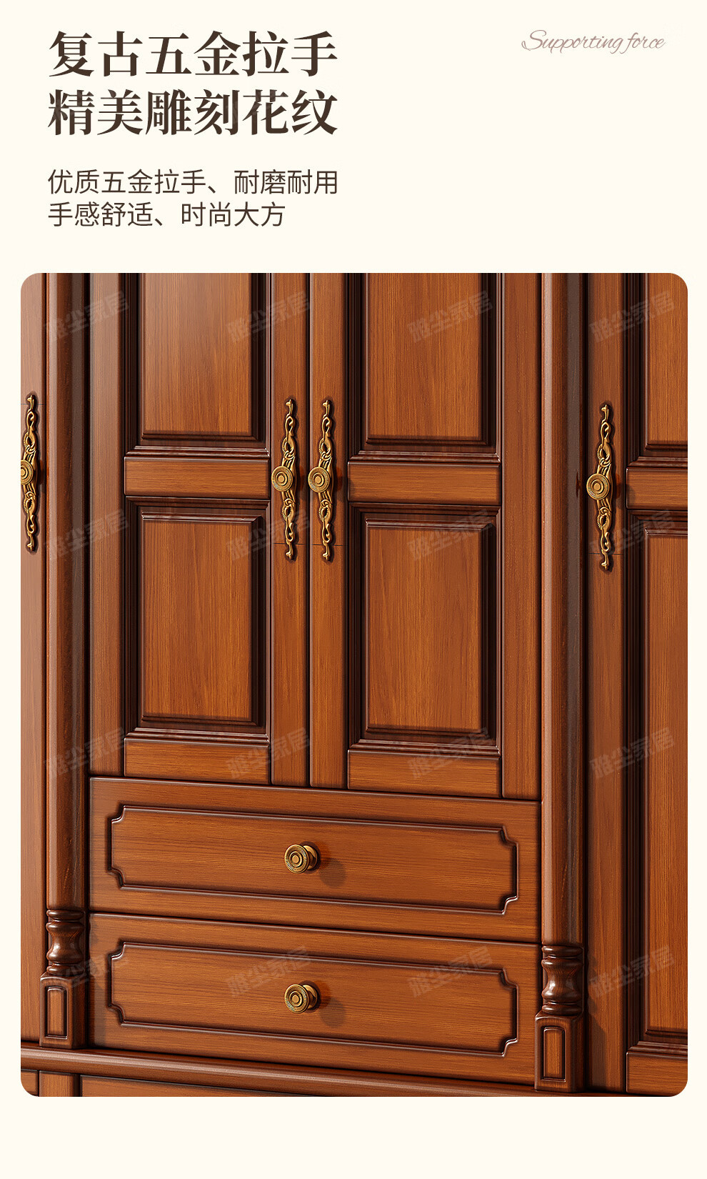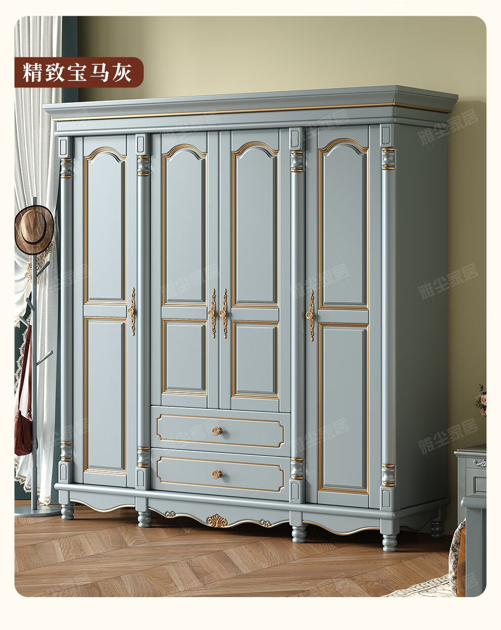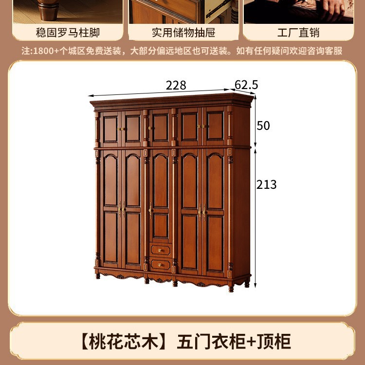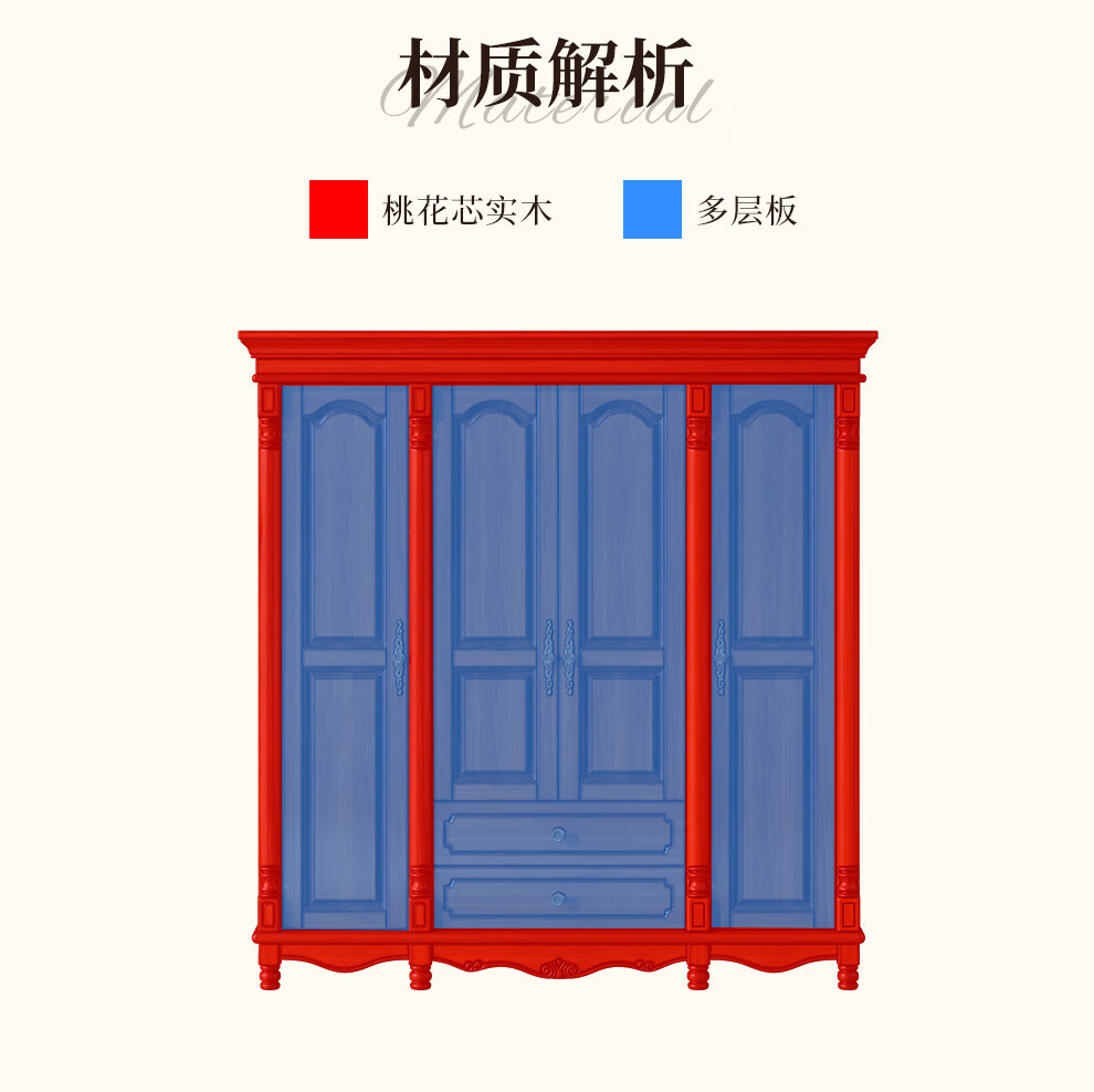 아메리칸 스타일 레트로 솔리드 우드 옷장 반대 문 4 도어 옷장 탑 캐비닛 마스터 침실 실내 대용량 저장 캐비닛