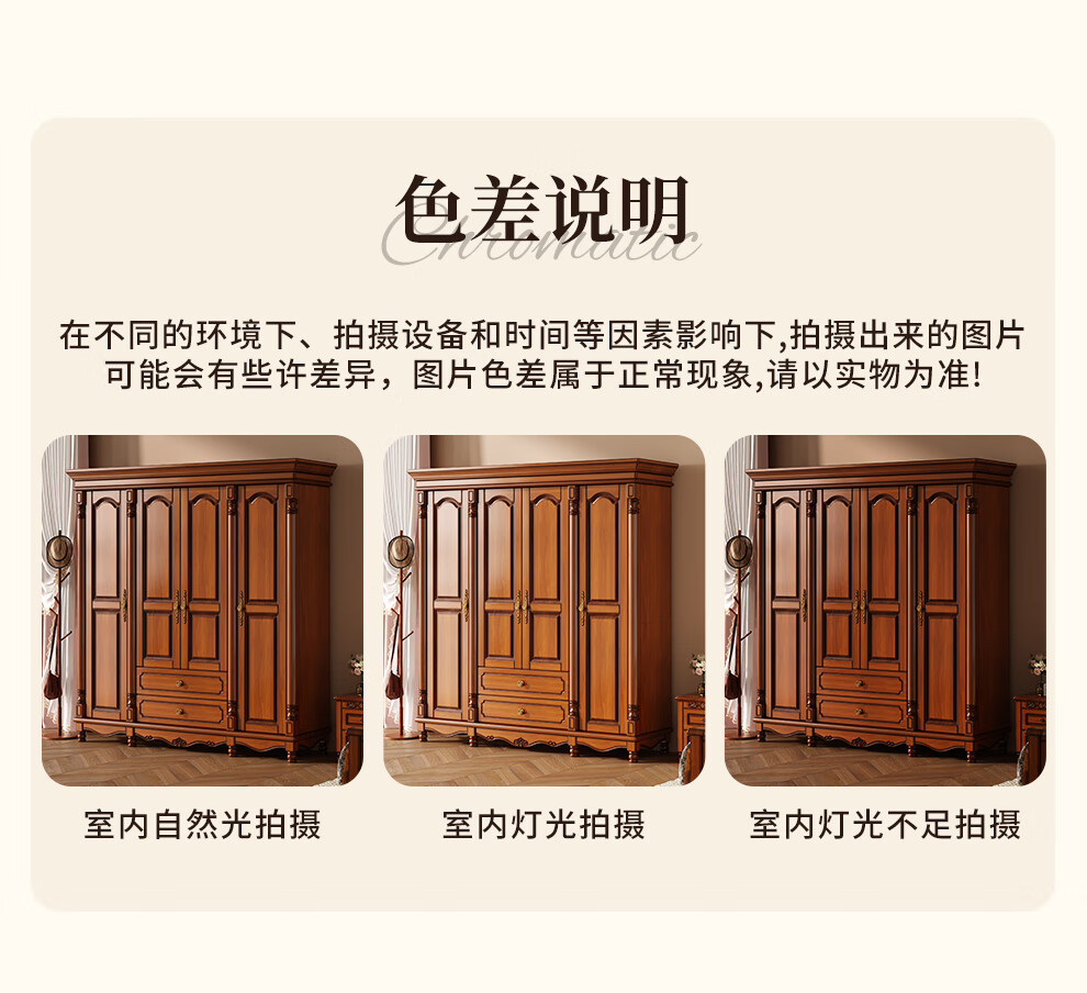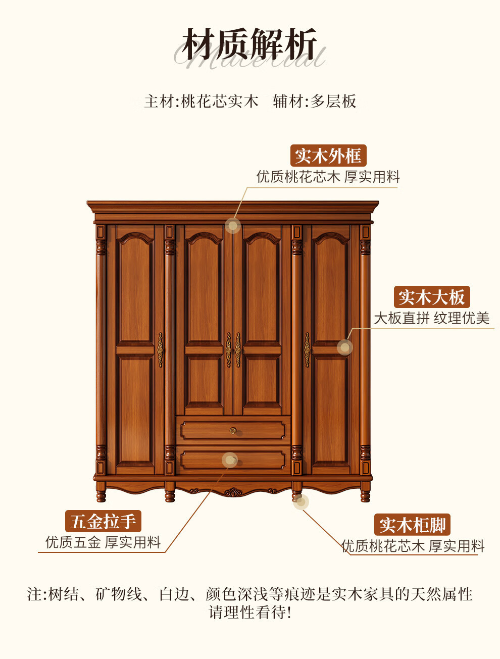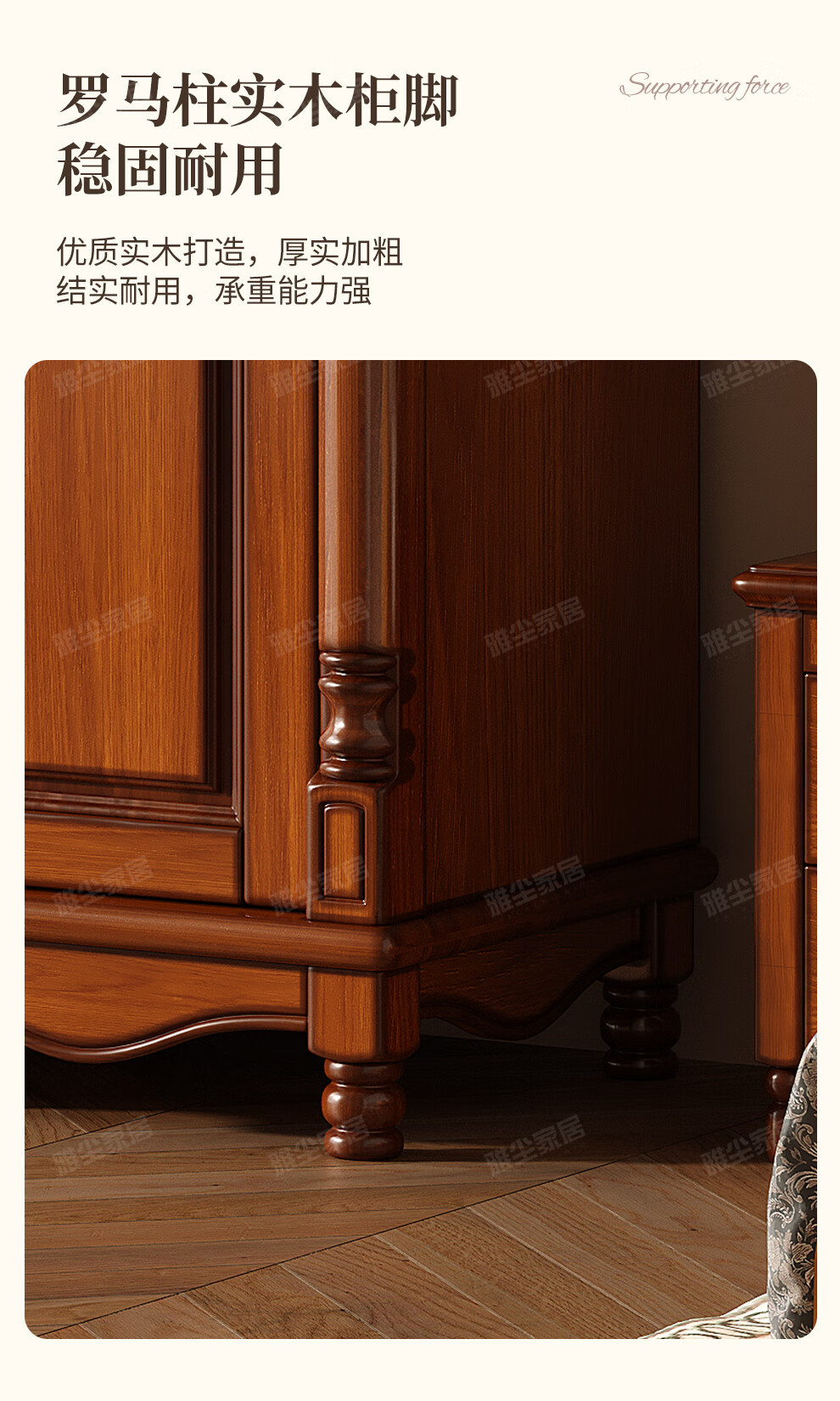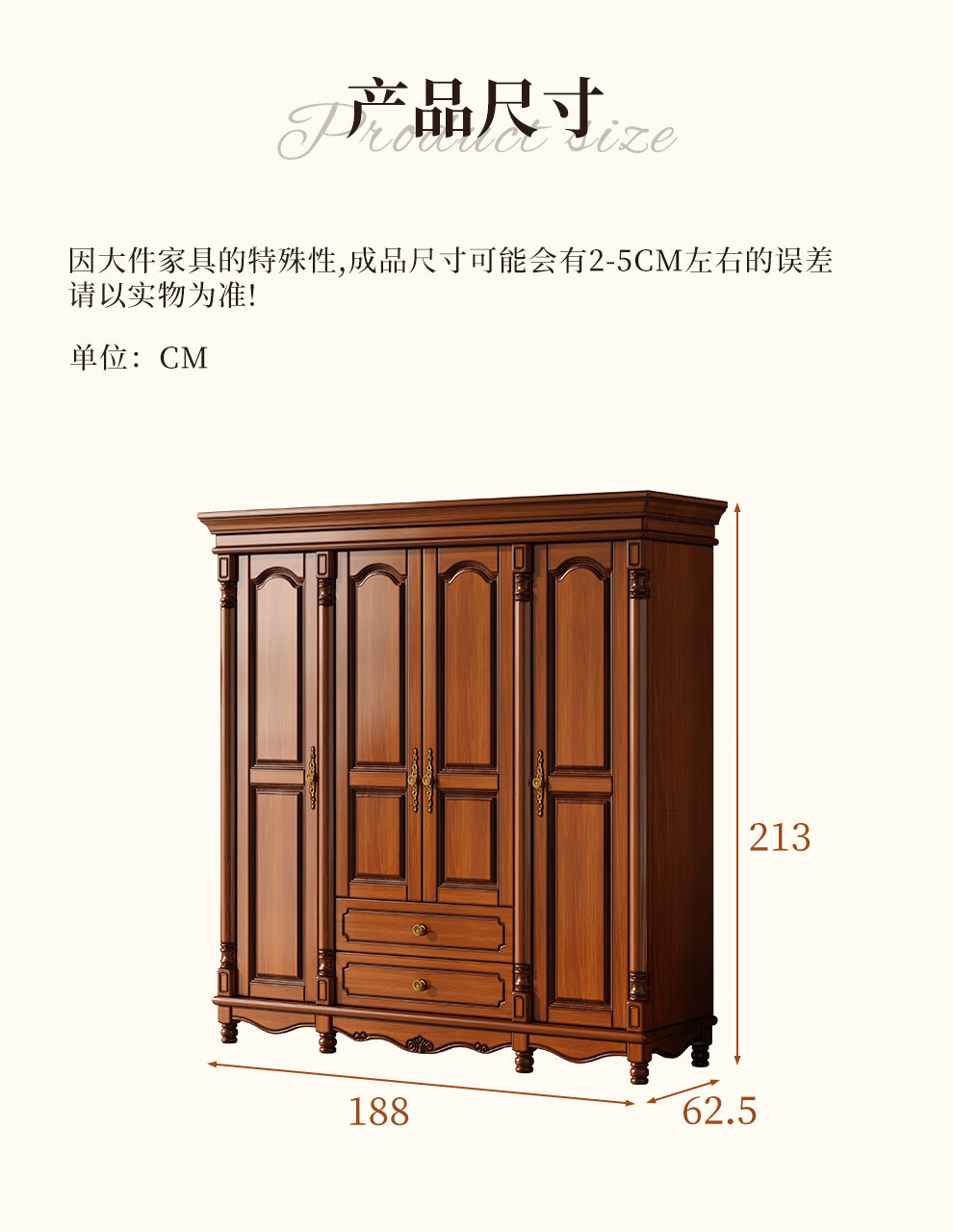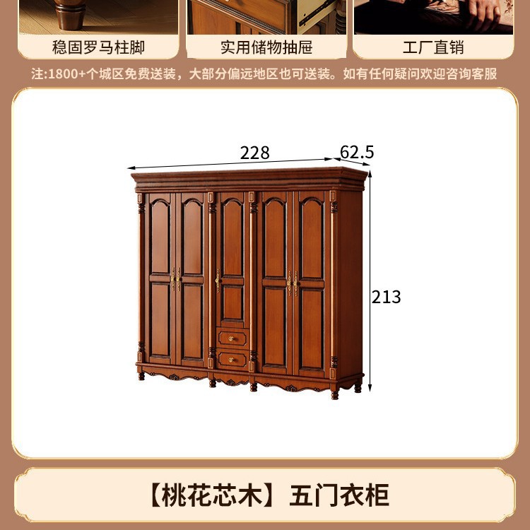 아메리칸 스타일 레트로 솔리드 우드 옷장 반대 문 4 도어 옷장 탑 캐비닛 마스터 침실 실내 대용량 저장 캐비닛