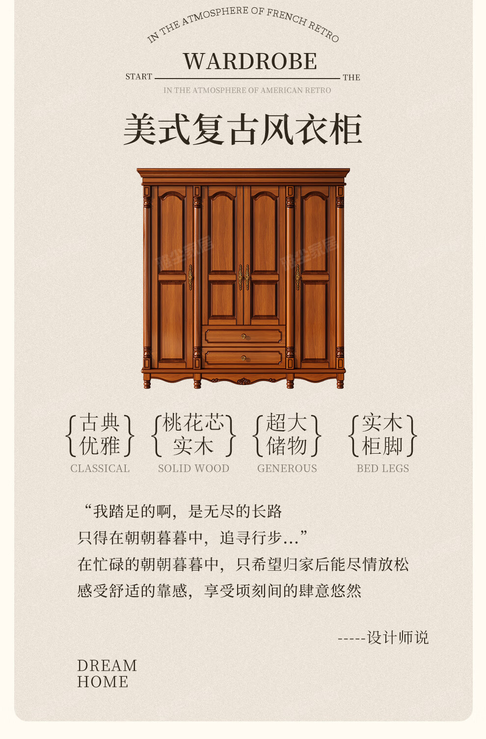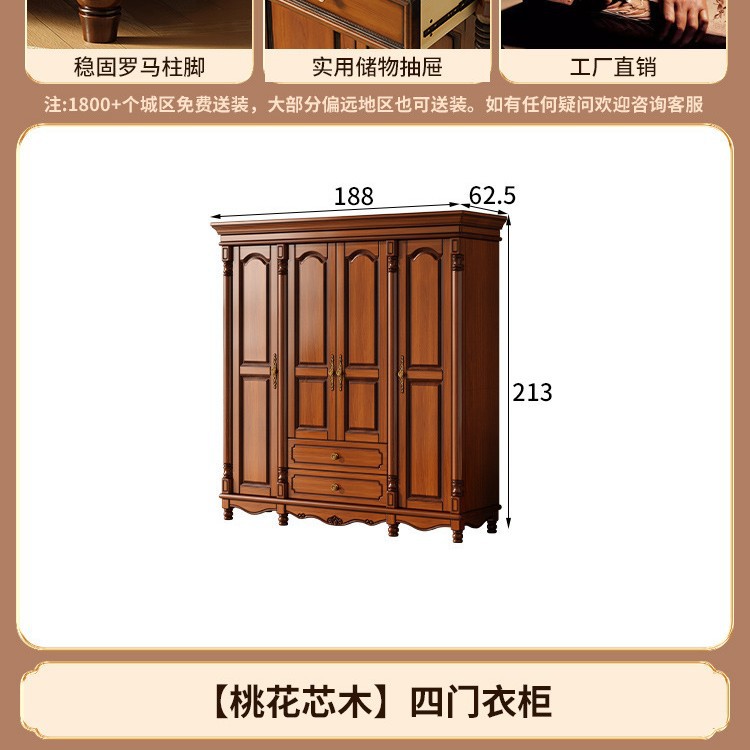 아메리칸 스타일 레트로 솔리드 우드 옷장 반대 문 4 도어 옷장 탑 캐비닛 마스터 침실 실내 대용량 저장 캐비닛스토어 가기