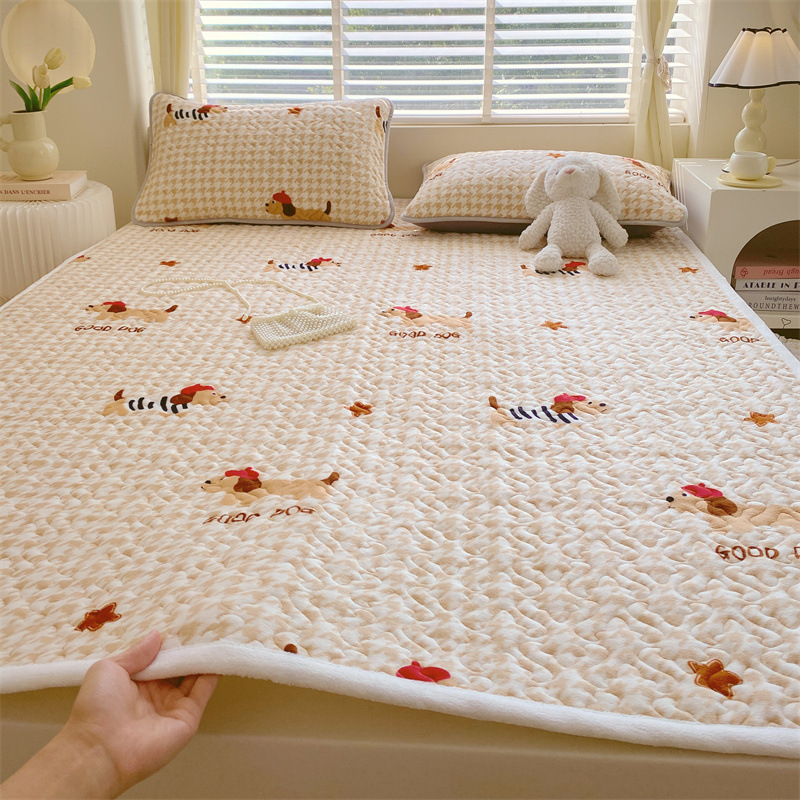 겨울 두꺼운 따뜻한 가정 침대 매트 겨울 산호 벨벳 담요 침대 싱글 침대 패드 우유 벨벳 침대 패드
