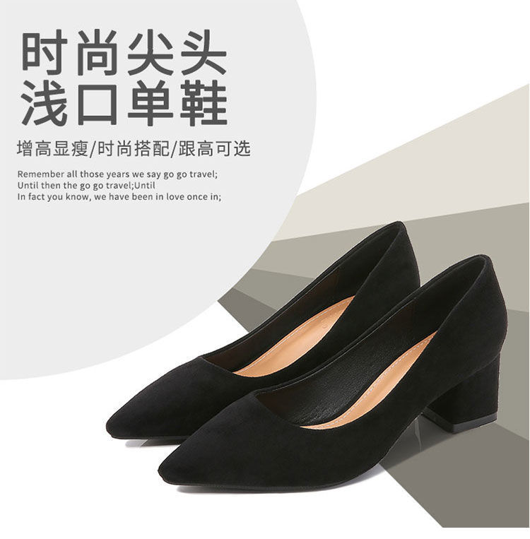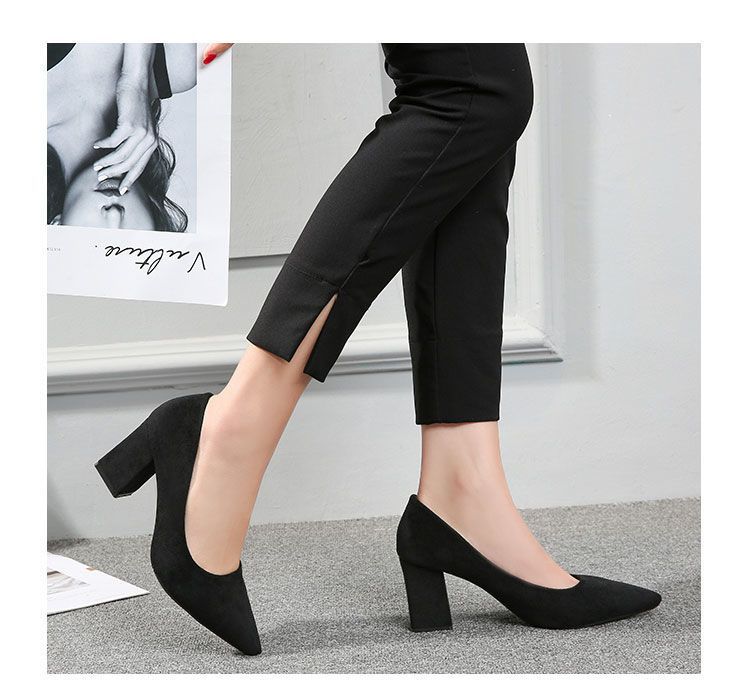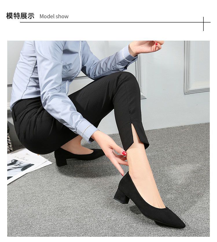 스튜어디스 작업 하이힐 블랙 두꺼운 힐 스웨이드 전문 신발 오래 서 있지 않은 피곤한 발 미들 힐 원피스 여성 싱글 신발스토어 가기