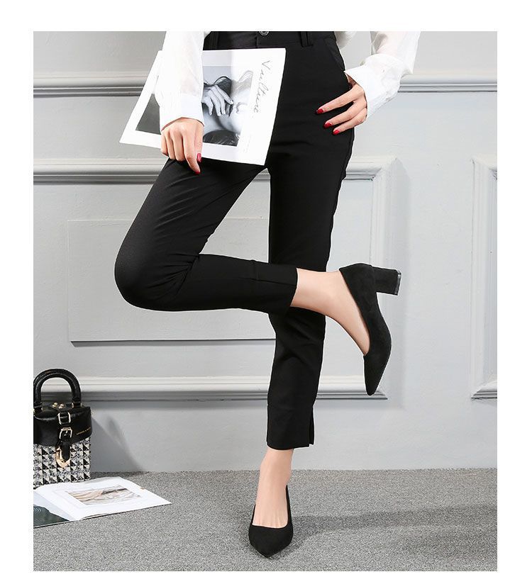 스튜어디스 작업 하이힐 블랙 두꺼운 힐 스웨이드 전문 신발 오래 서 있지 않은 피곤한 발 미들 힐 원피스 여성 싱글 신발