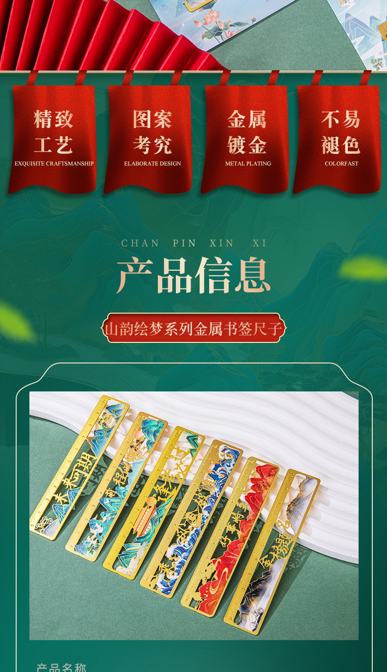 천리 산수 초등학생 보상용 자, 중국풍 새해 선물, 학습 문구 선물, 금속 책갈피 맞춤 제작