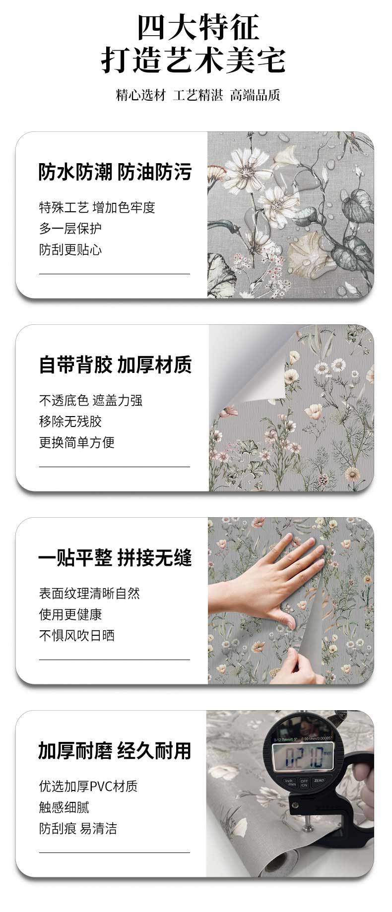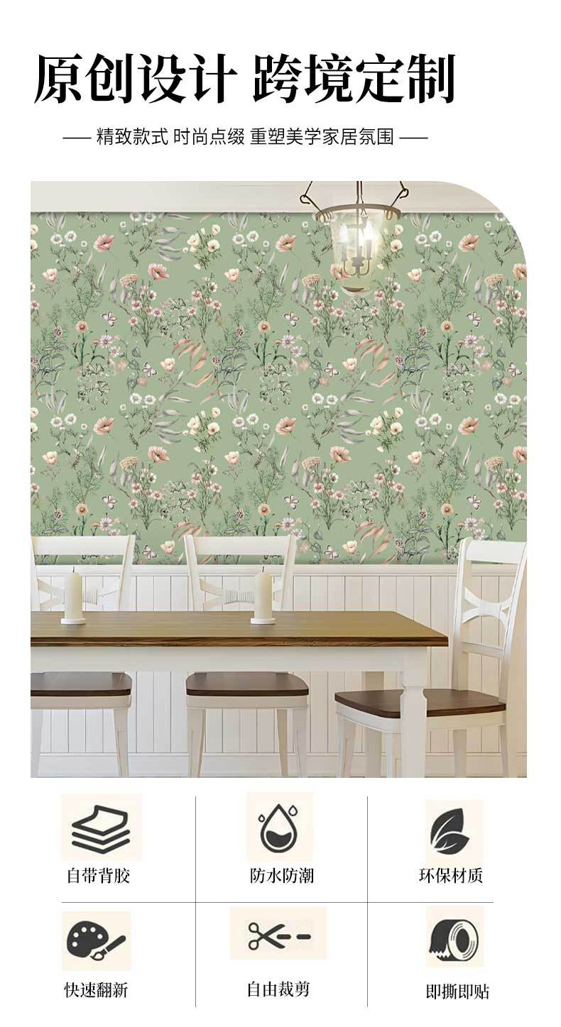 벽지 침실 자기 접착 따뜻한 배경 벽 장식 그림 벽지 프랑스 자체 접착 스티커 pvc 자체 접착 벽지스토어 가기