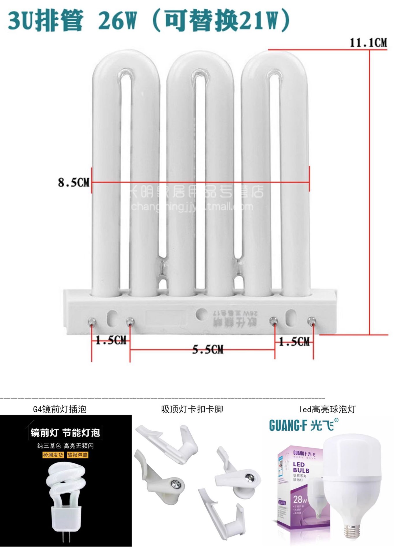 3U 튜브 램프 21w26w YDW21 사각형 3 색 형광 에너지 절약 보편적 인 U 튜브 주방 및 화장실스토어 가기