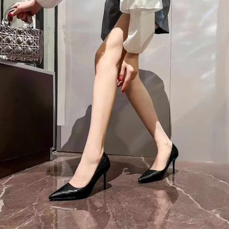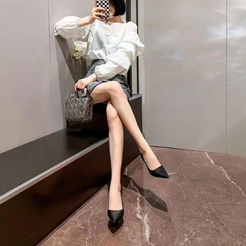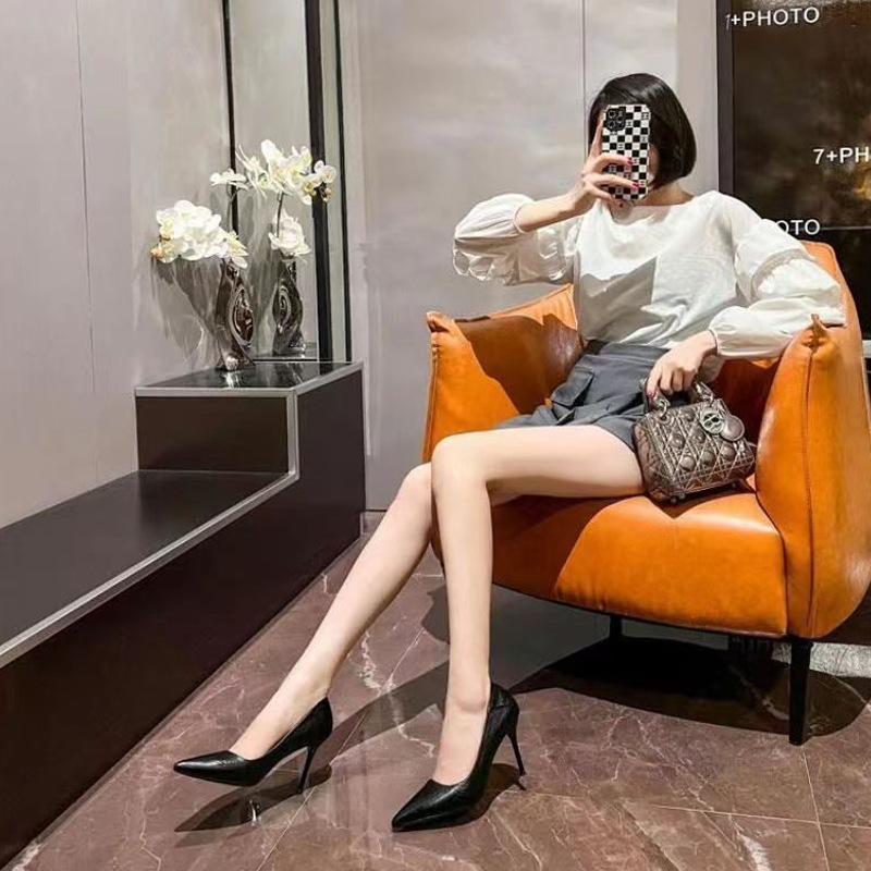 여성을위한 인터넷 연예인 블랙 부드러운 가죽 하이힐 2024 봄, 가을 새로운 한국 스타일 섹시한 싱글 슈즈 프렌치 스틸레토 힐 포인티드 토 슈즈스토어 가기