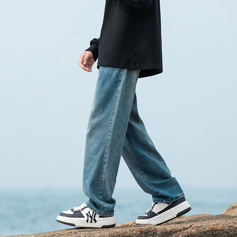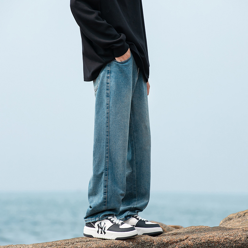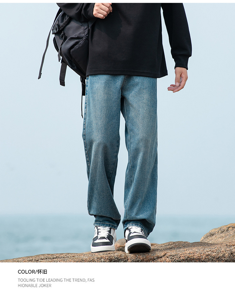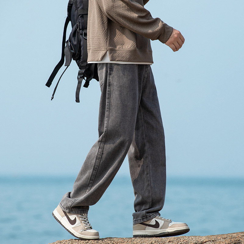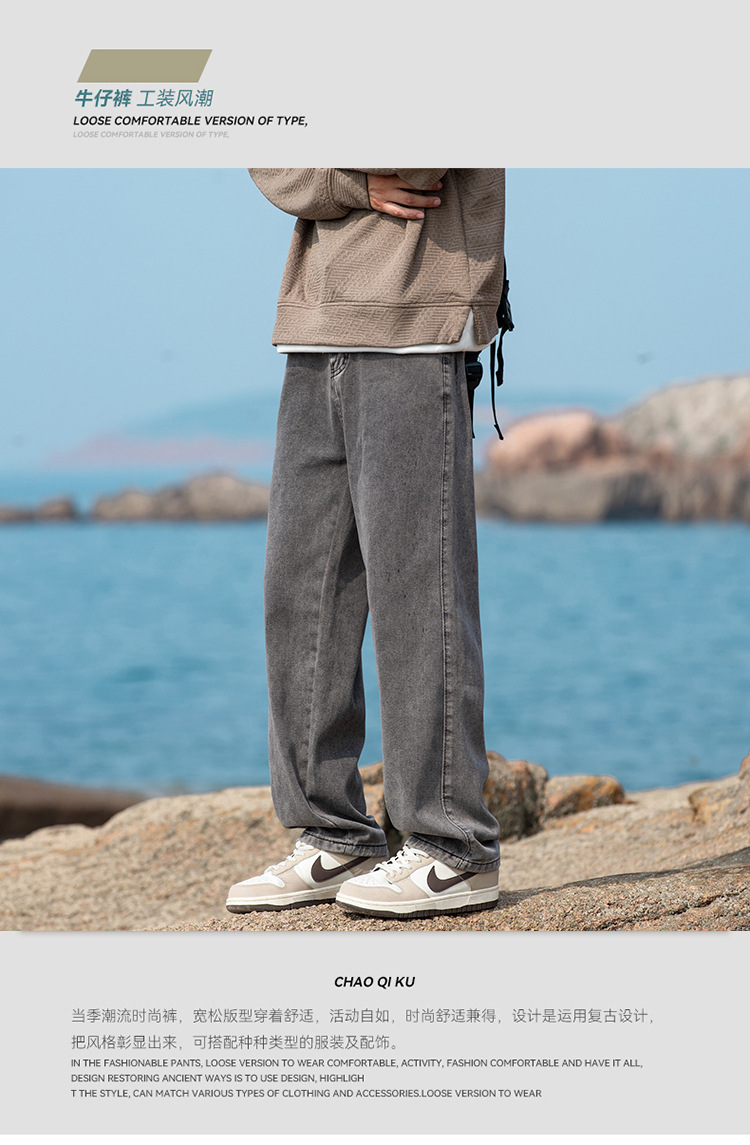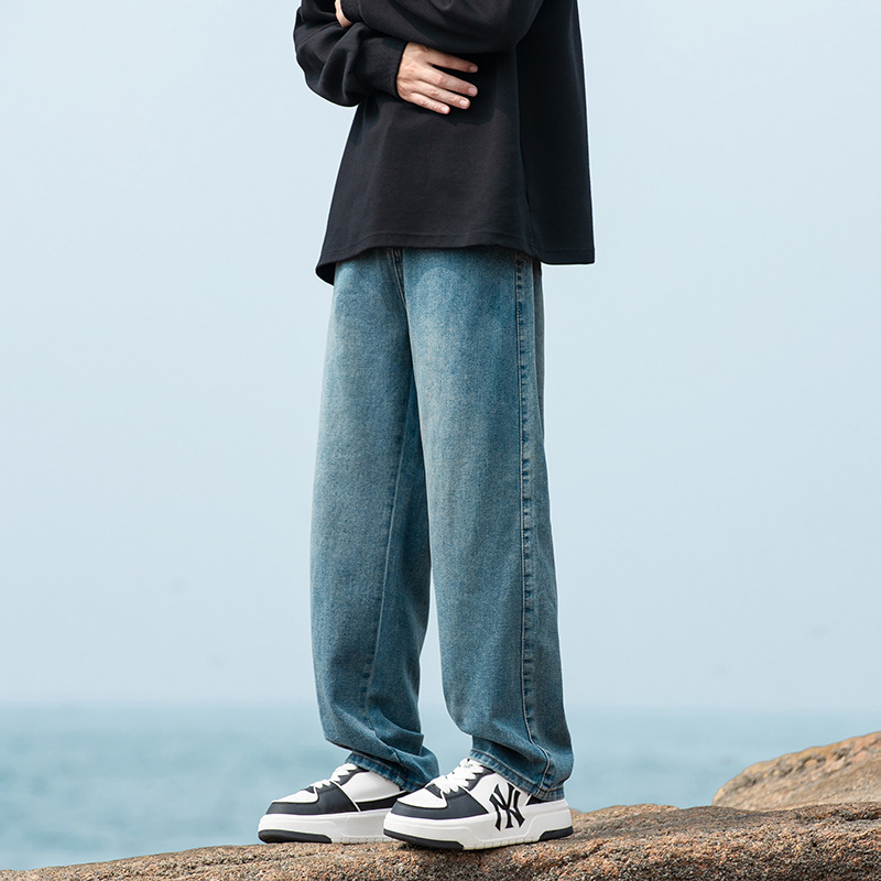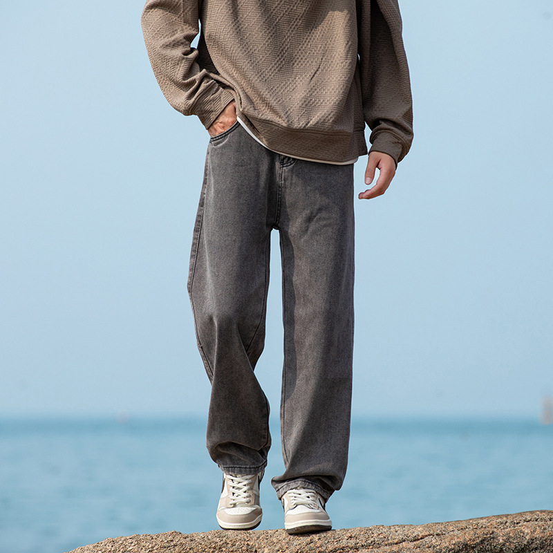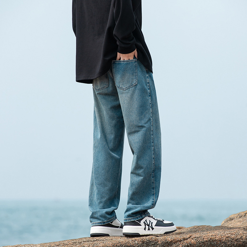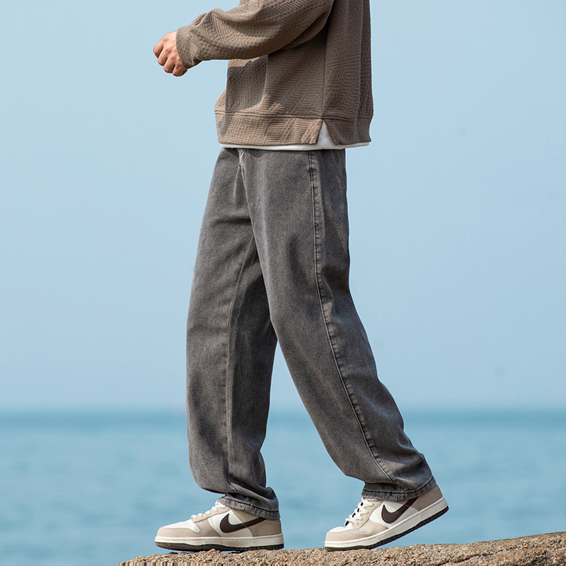 2024 국경 새로운 남성 청바지 트렌디 브랜드 느슨한 스트레이트 바지 간단한 편안한 캐주얼 레트로 바지스토어 가기