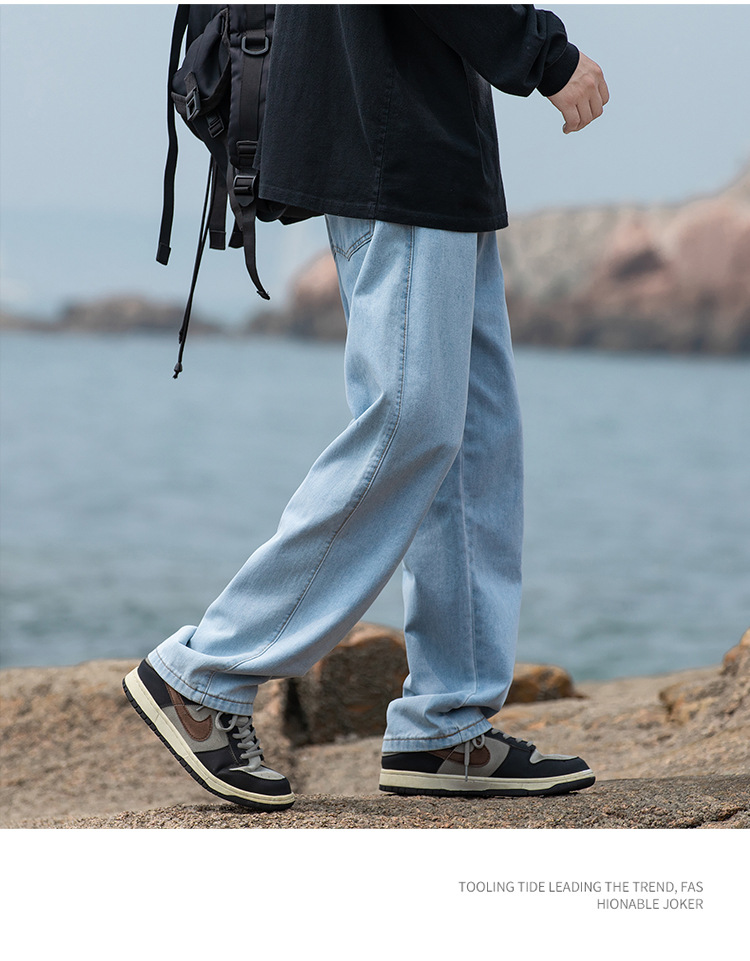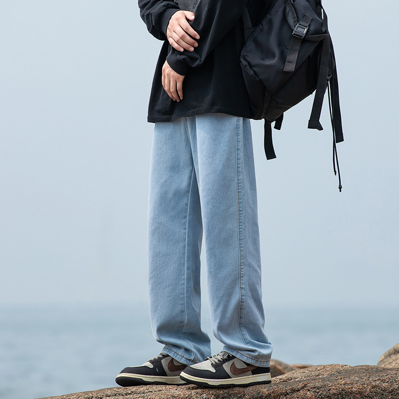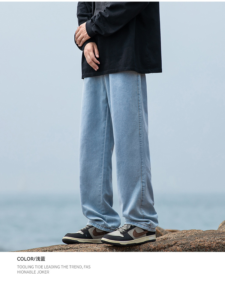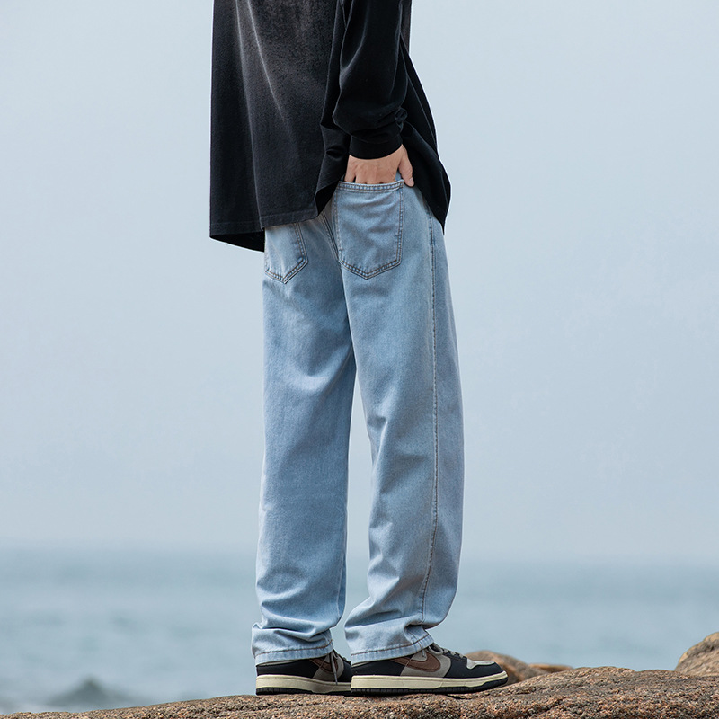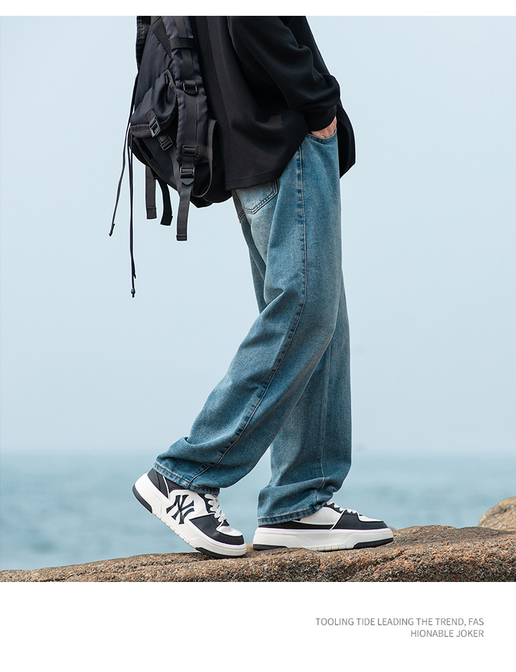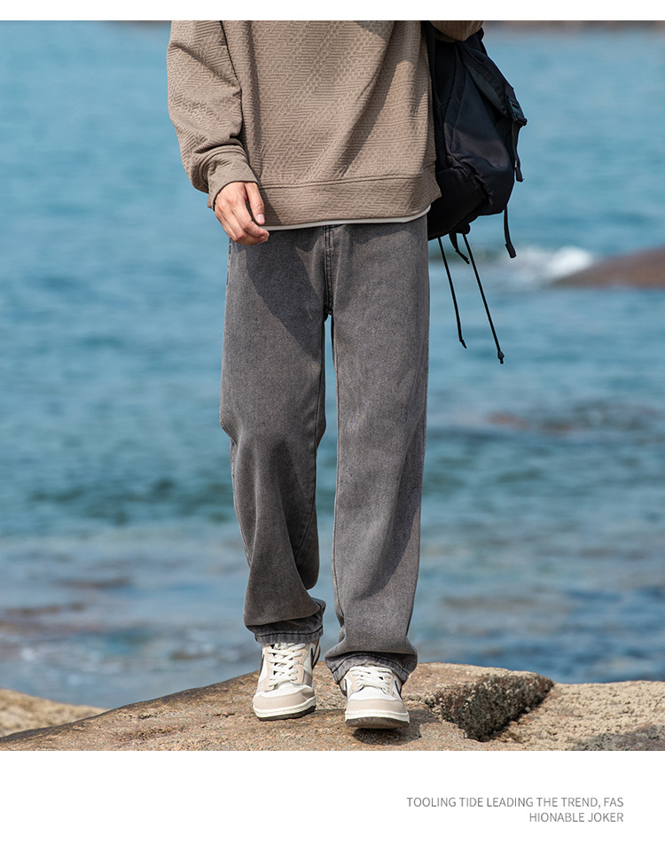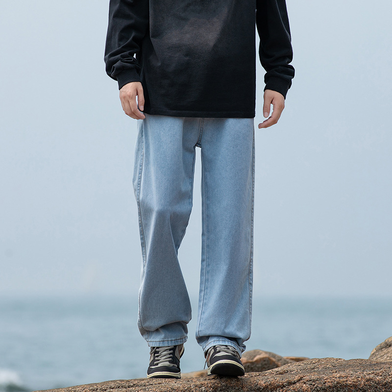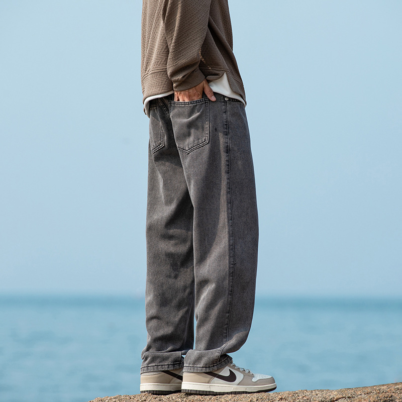 2024 국경 새로운 남성 청바지 트렌디 브랜드 느슨한 스트레이트 바지 간단한 편안한 캐주얼 레트로 바지스토어 가기