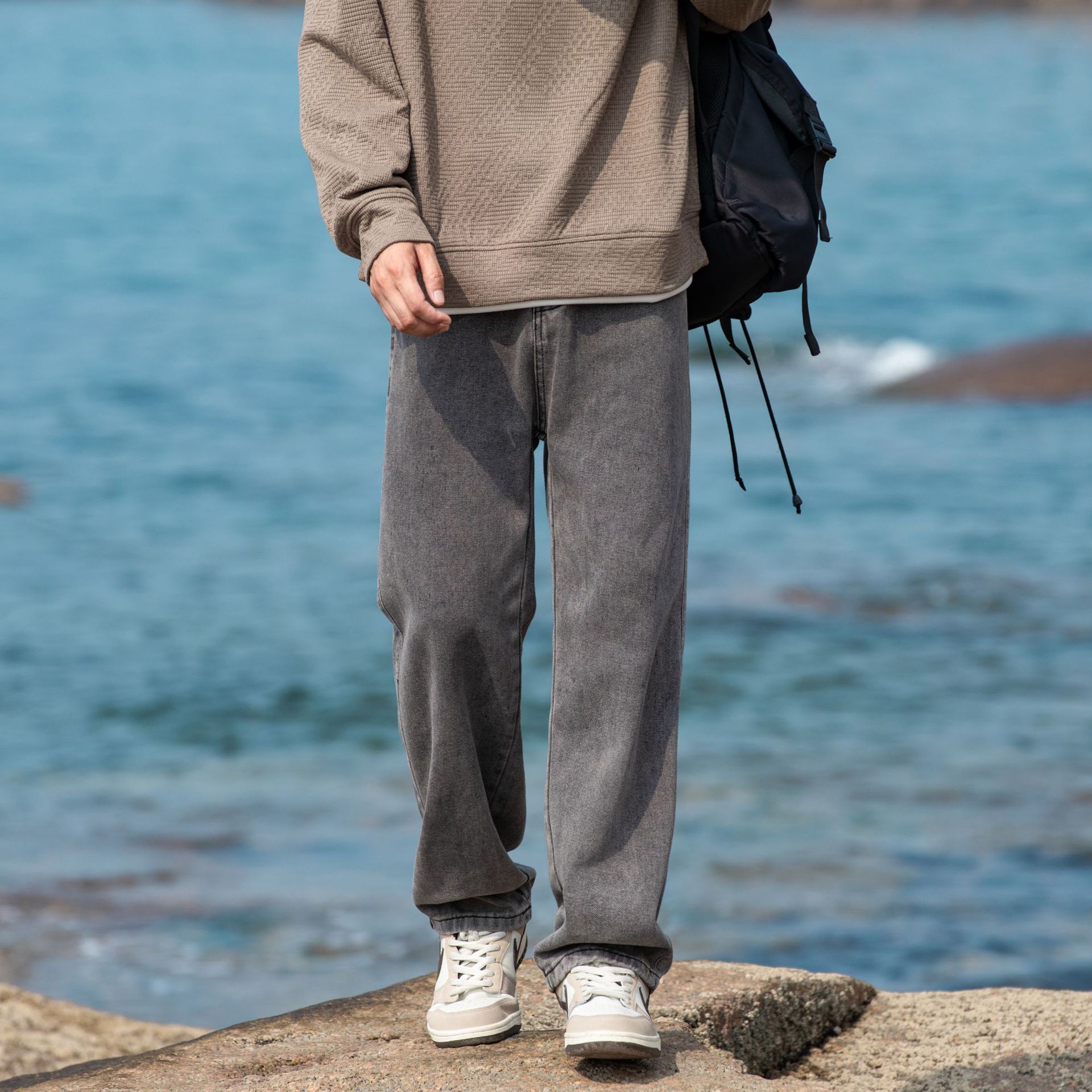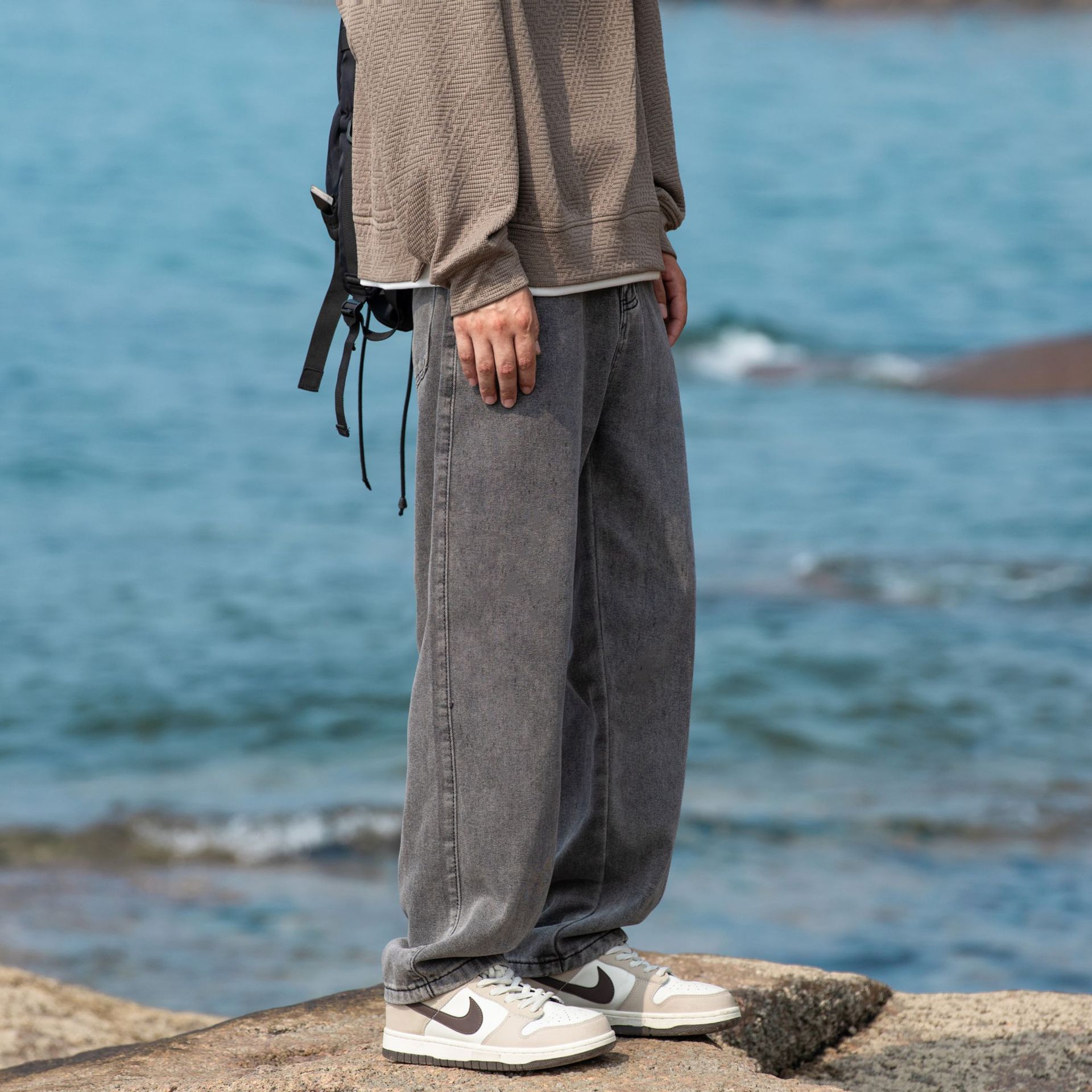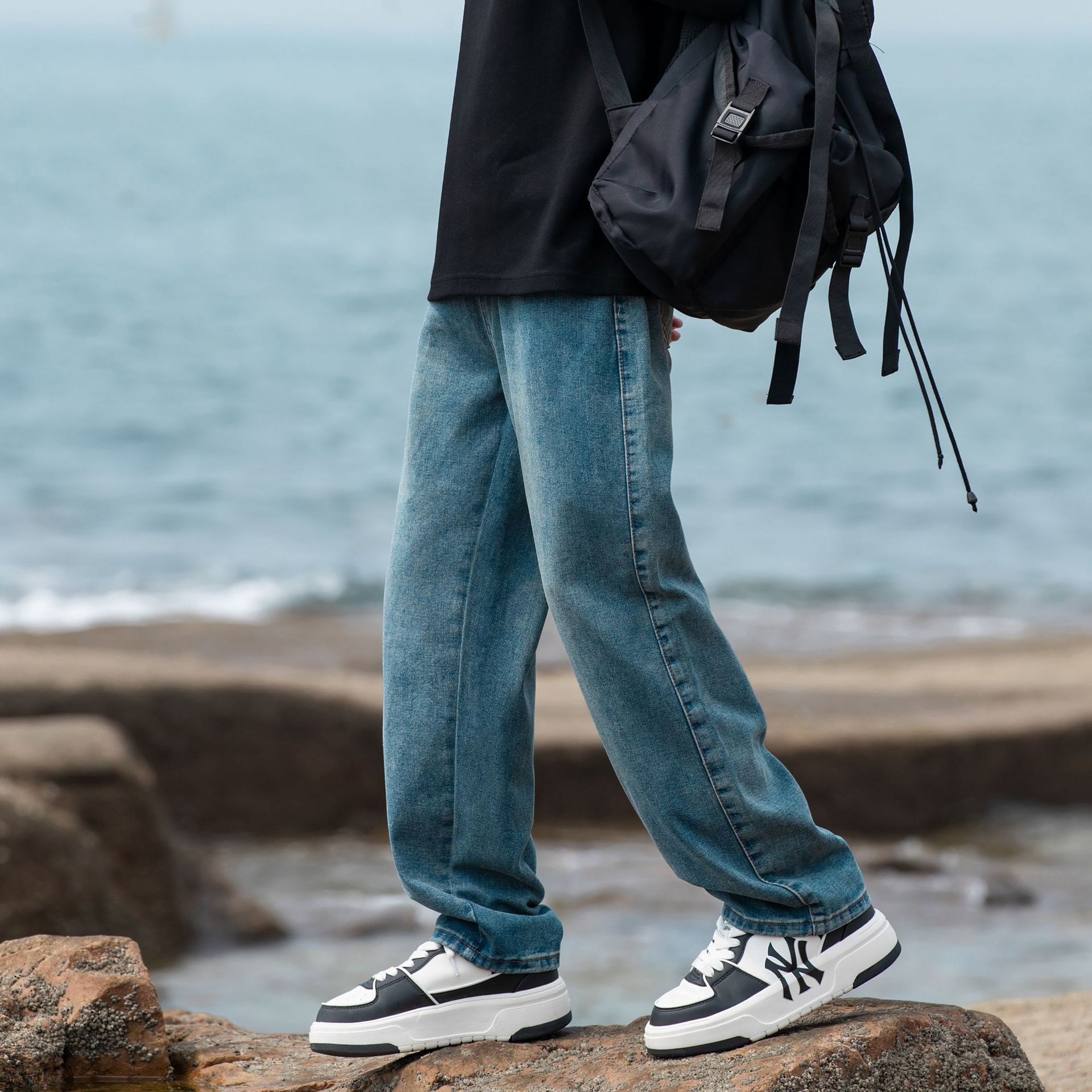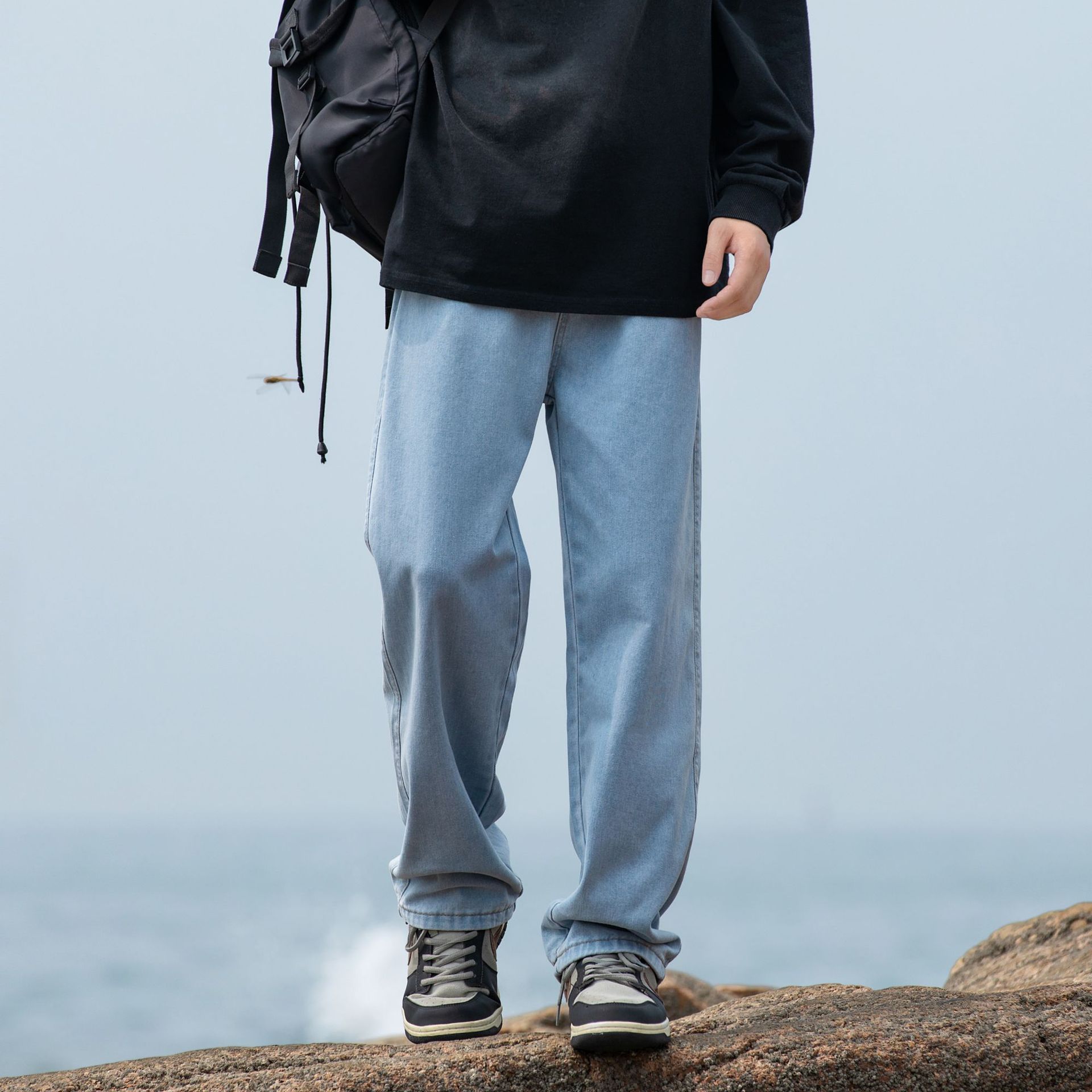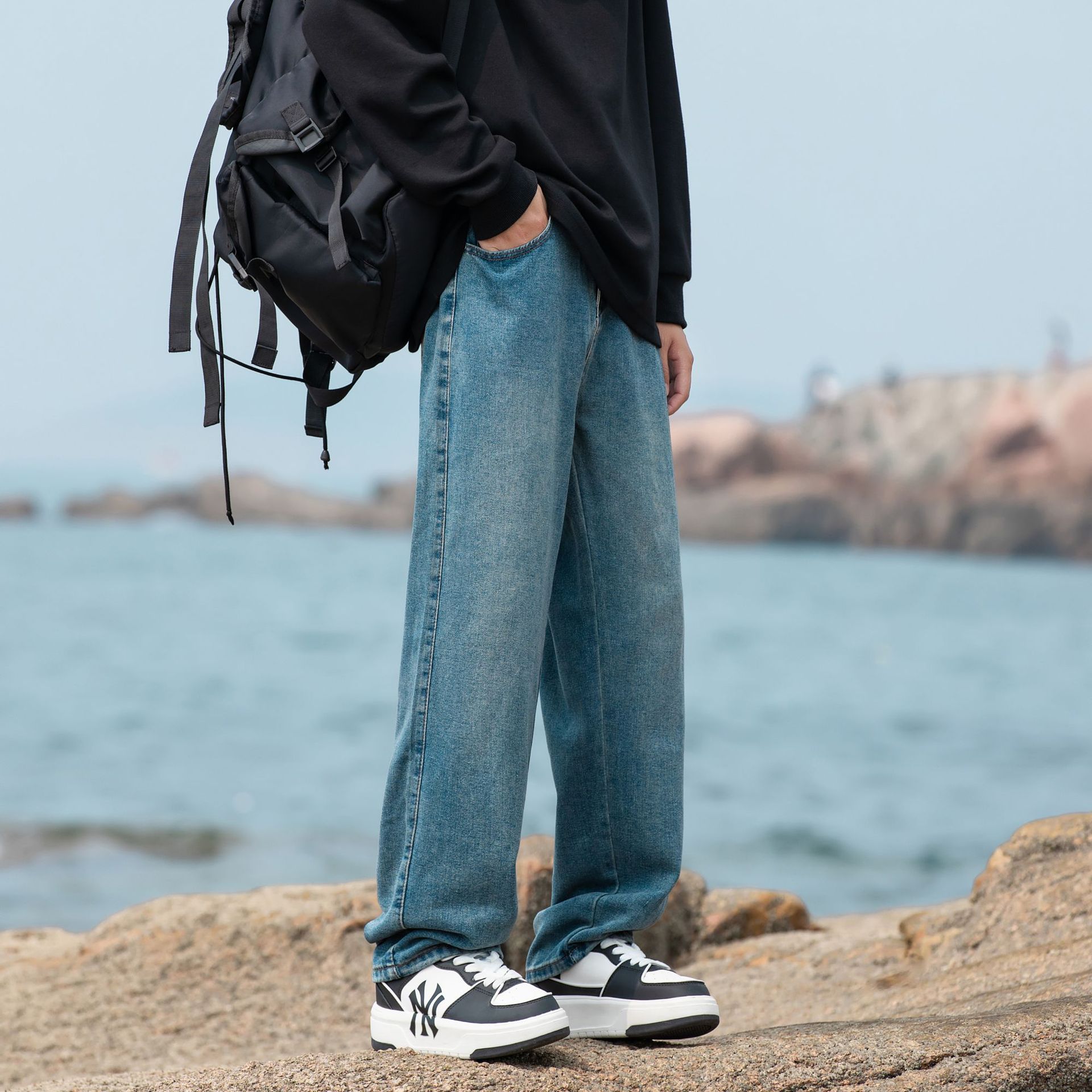 2024 국경 새로운 남성 청바지 트렌디 브랜드 느슨한 스트레이트 바지 간단한 편안한 캐주얼 레트로 바지스토어 가기